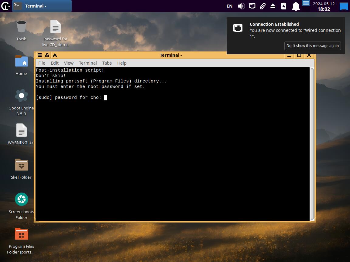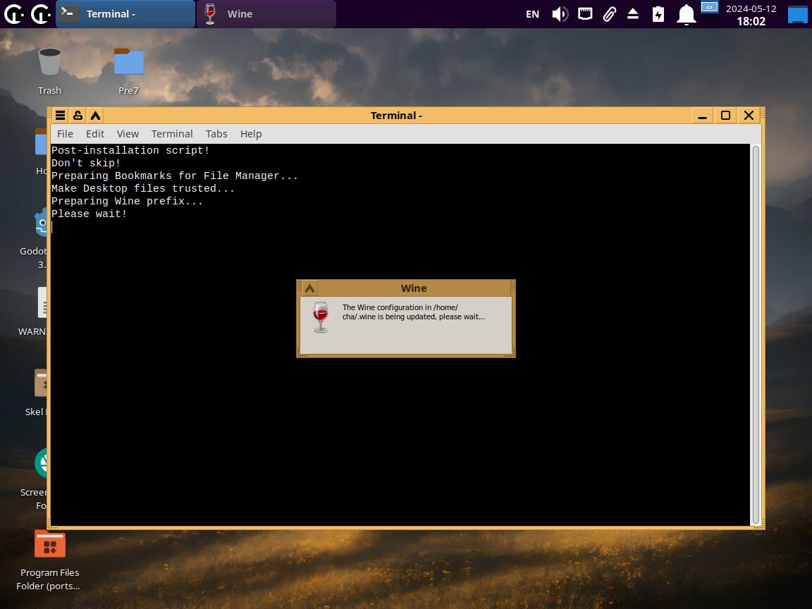 Скрипт срабатывающий после установки тоже улучшен, он занимается подготовкой Wine префикса для работы и прочими мелочами, больше нет необходимости вводить root пароль, и всё происходит само: