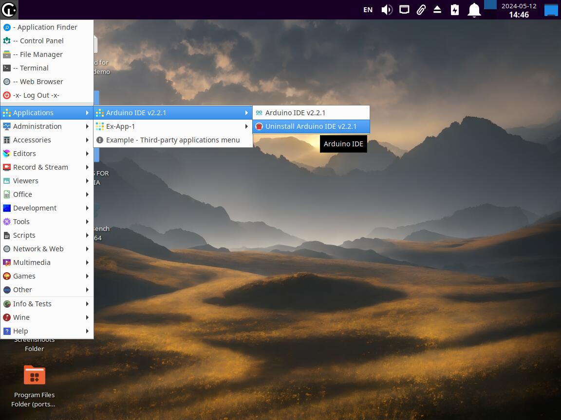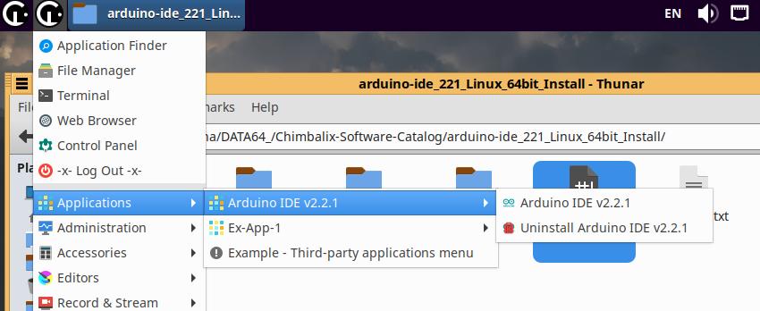 Дальше нужно работать над следующей версией Chimbalix Linux, в частности переработать меню Пуск, разумеется не затрагивая одну единственную категорию "Applications", отныне это будет категория, которую я постараюсь ни при каких обстоятельствах не ломать, ибо не хочу переделывать уже существующий установочный пакет Arduino IDE, а в будущем и многие другие приложения, использующие данную категорию меню Пуск:
