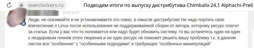 Выпуск Chimbalix 24.1 Alphachi Pre7 и очередное подтверждение некомпетентности адептов Linux