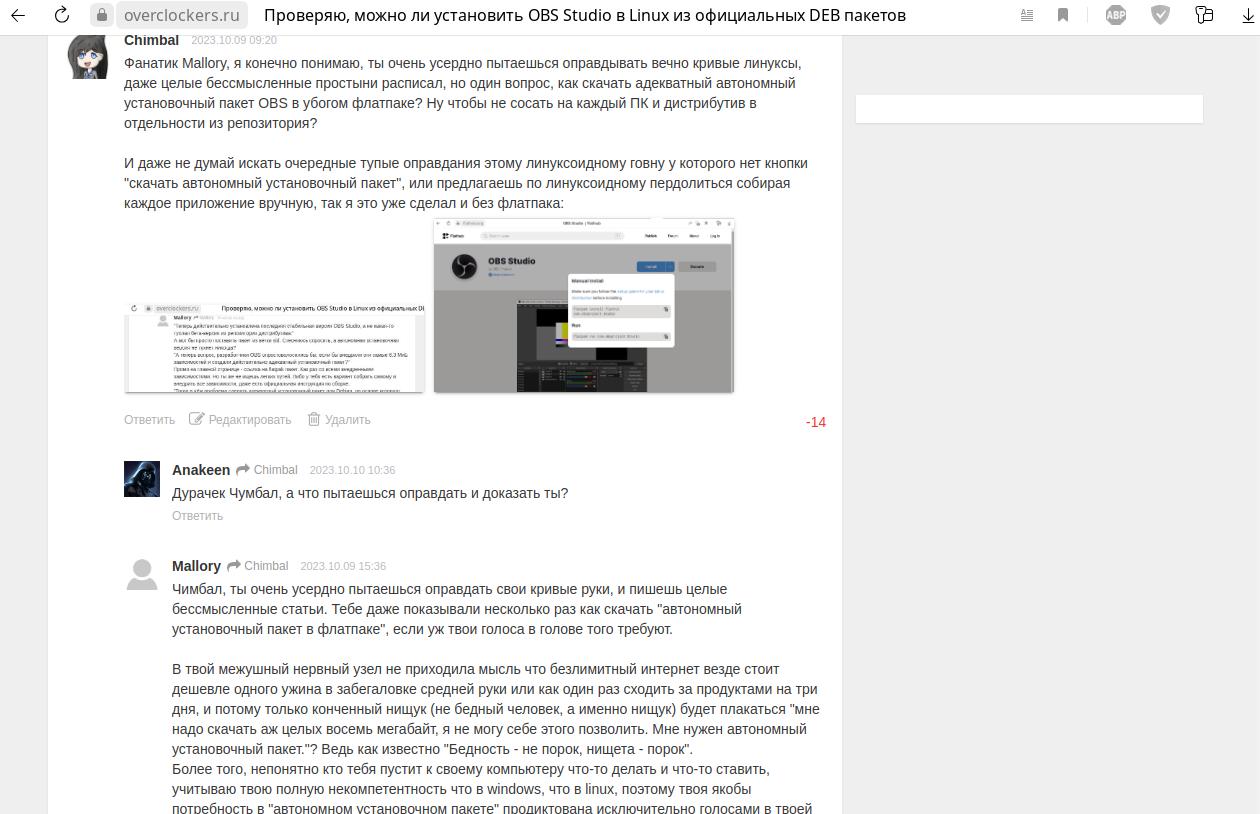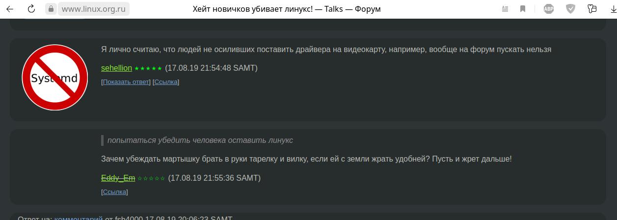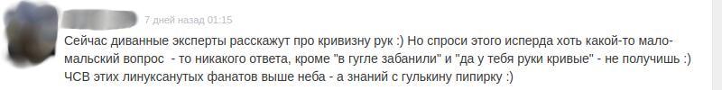 Однако проблема не в том, что я мог кого-то ввести в заблуждение относительно такой мелочи, проблема в линуксоидах, точнее в неадекватной, самой крикливой части сообщества Linux, благодаря которой репутация у сообщества в целом далеко не из лучших, и сейчас поймёте почему, если кто-то до сих пор не понимает.