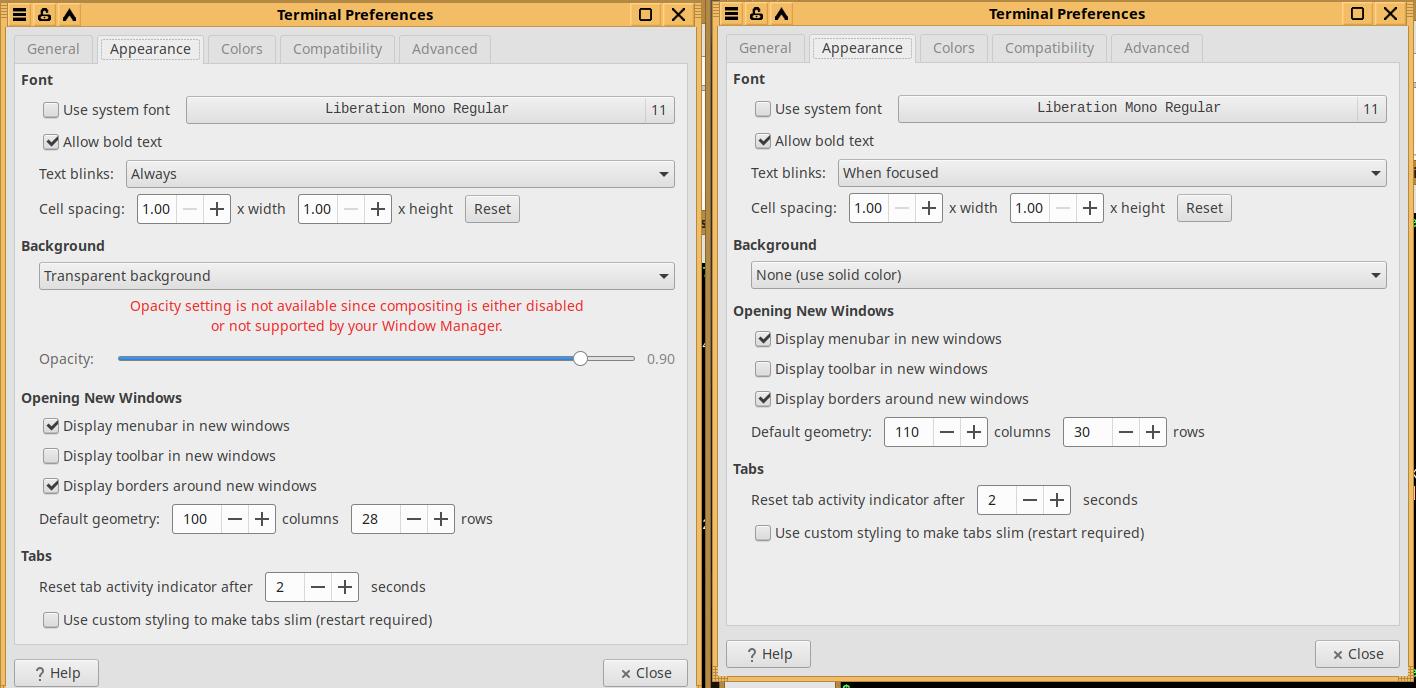 Напоследок посмотрим на ещё одно ощутимое изменение в новой версии Chimbalix Linux, подправлена цветовая схема терминала для улучшения читаемости шрифтов, расширена история с 1 000 строк до 10 000, ибо как показала практика - 1 000 строк слишком мало для истории, особенно если что-то компилируется, так же был настроен курсор, теперь его форма и поведение соответствует "стандарту" к которому привыкло большинство людей, в том числе и я: