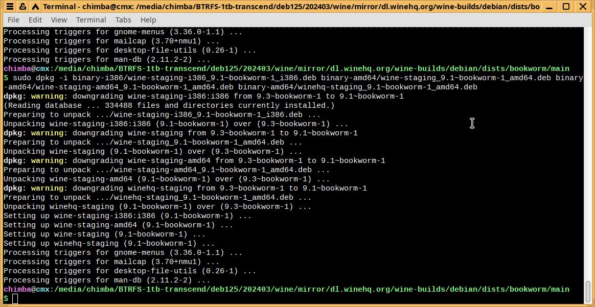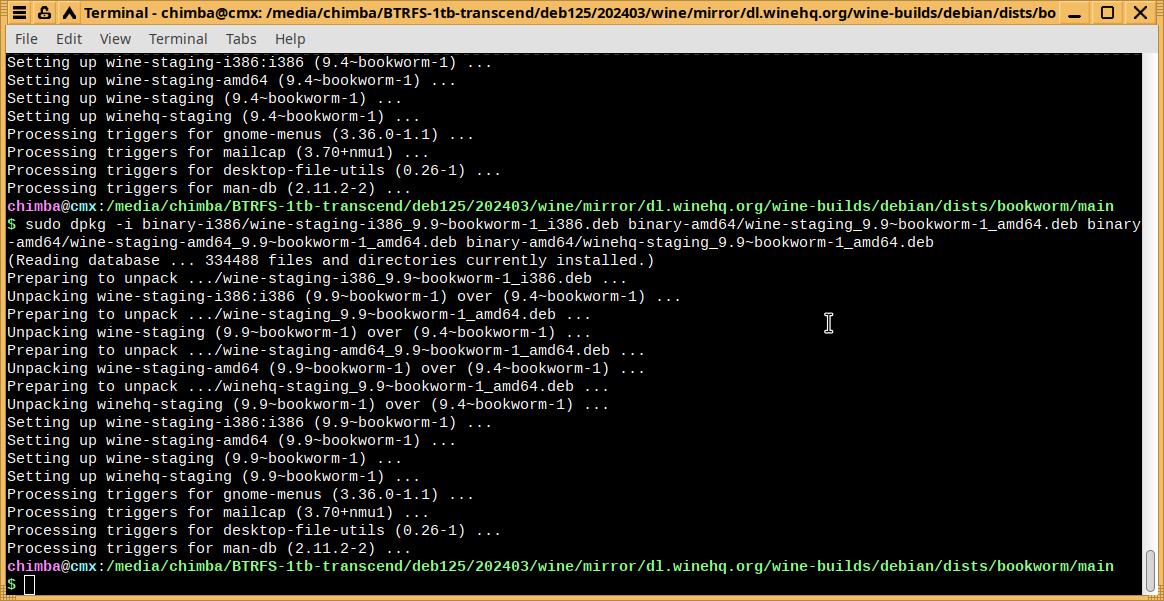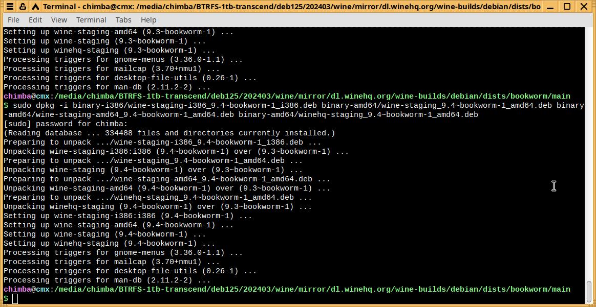 Далее обновляю Wine до версии 9.4, всё вручную, ибо линуксоидные пакетные менеджеры говно, говорю как есть: