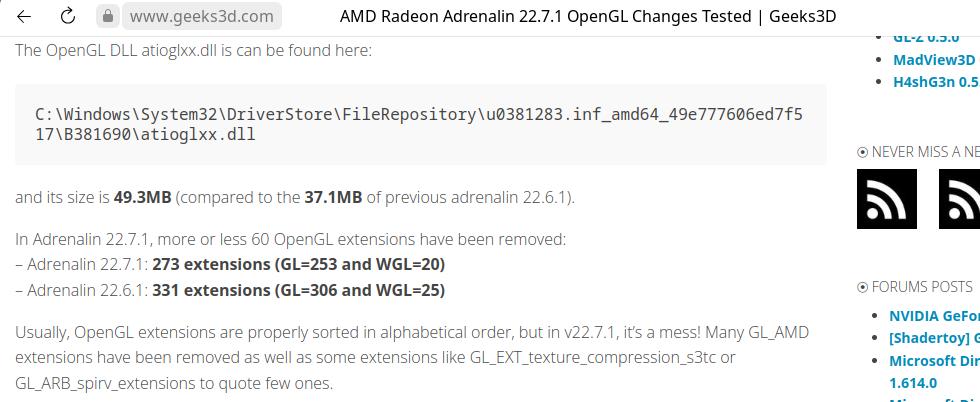 Прямо как AMD со своими вечно кривыми и проблемными драйверами, повырезали расширения OpenGL: