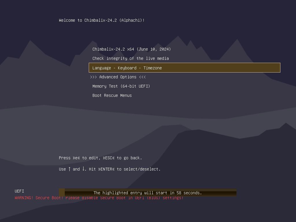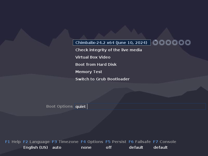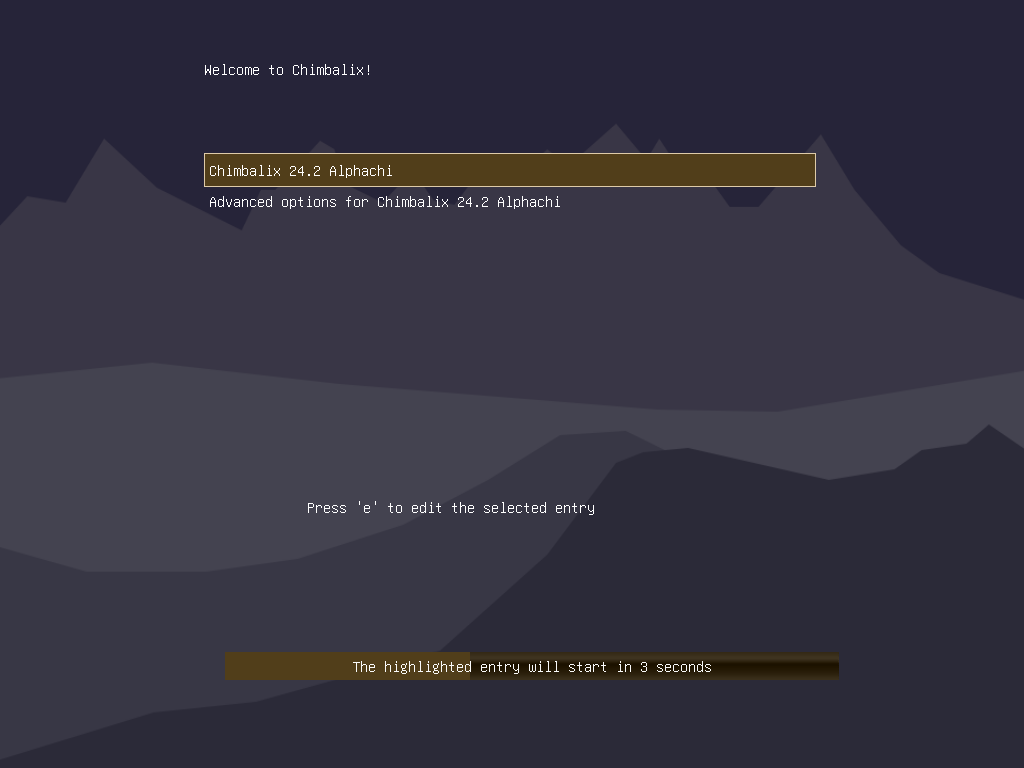 Начнём с установки, тут изменений особых нет, загрузочное меню осталось практически без изменений относительно Chimbalix 24.1: