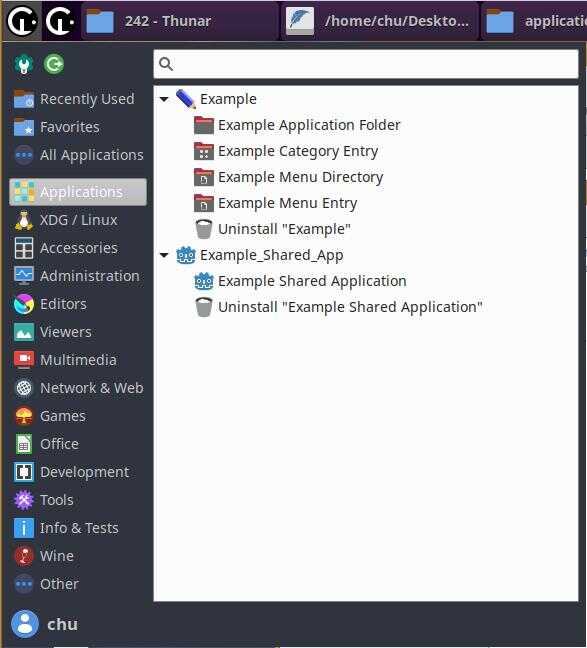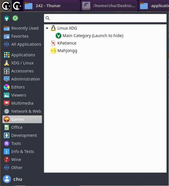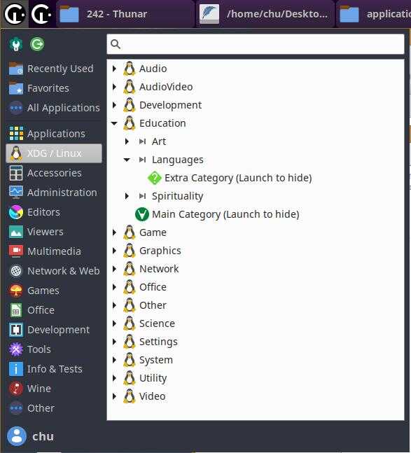 Теперь пара слов о категории "XDG / Linux", как некоторые могли заметить, эта категория практически полностью соответствует спецификациям Desktop Menu версии 1.1 и я специально оставил два тестовых ярлыка для демонстрации данного раздела, именно в этот раздел будет падать весь линуксоидный софт, и по большей части, этот раздел необходим для совместимости с уже существующим софтом: