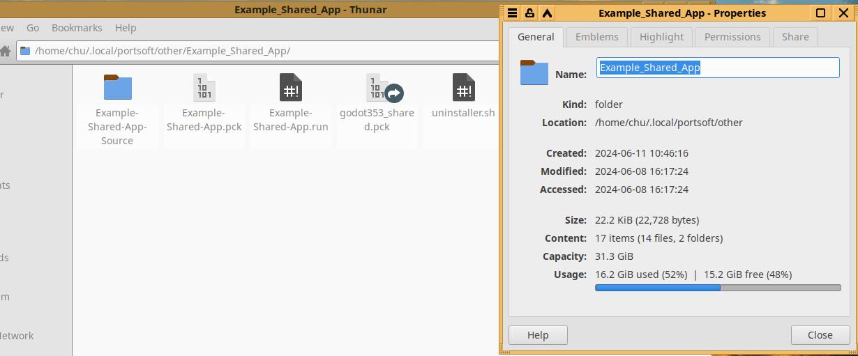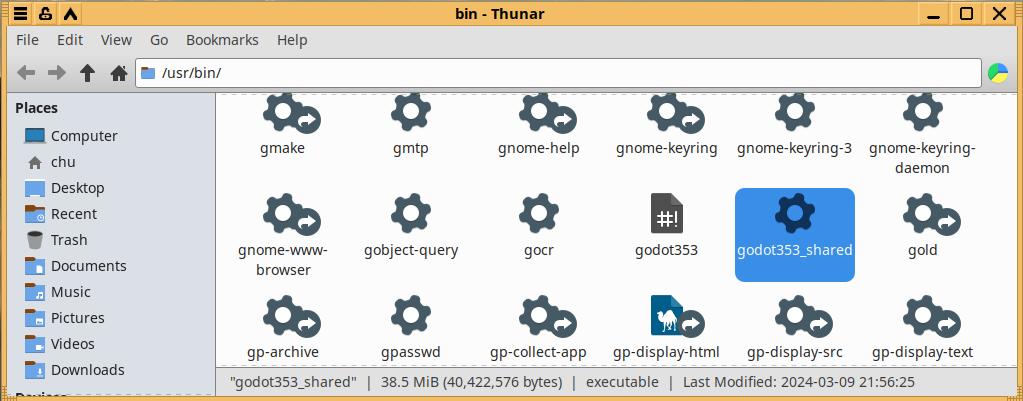 Потому я не придумал ничего лучшего, как встроить исполняемый файл игрового движка в систему под именем "godot353_shared", такое имя сформировано не просто так, ведь в будущем, возможно, будет встроен исполняемый файл и для Godot Engine 4 версии, но это только если подход докажет свою состоятельность: