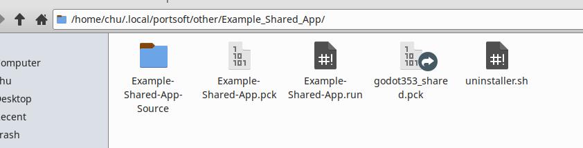Да, есть некоторые костыли, например символическая ссылка с именем "godot353_shared" указывающая на файл ресурсов приложения, это необходимо т.к. движок ищет файл с таким же именем, как и исполняемый:
