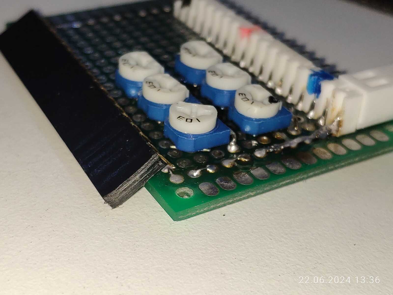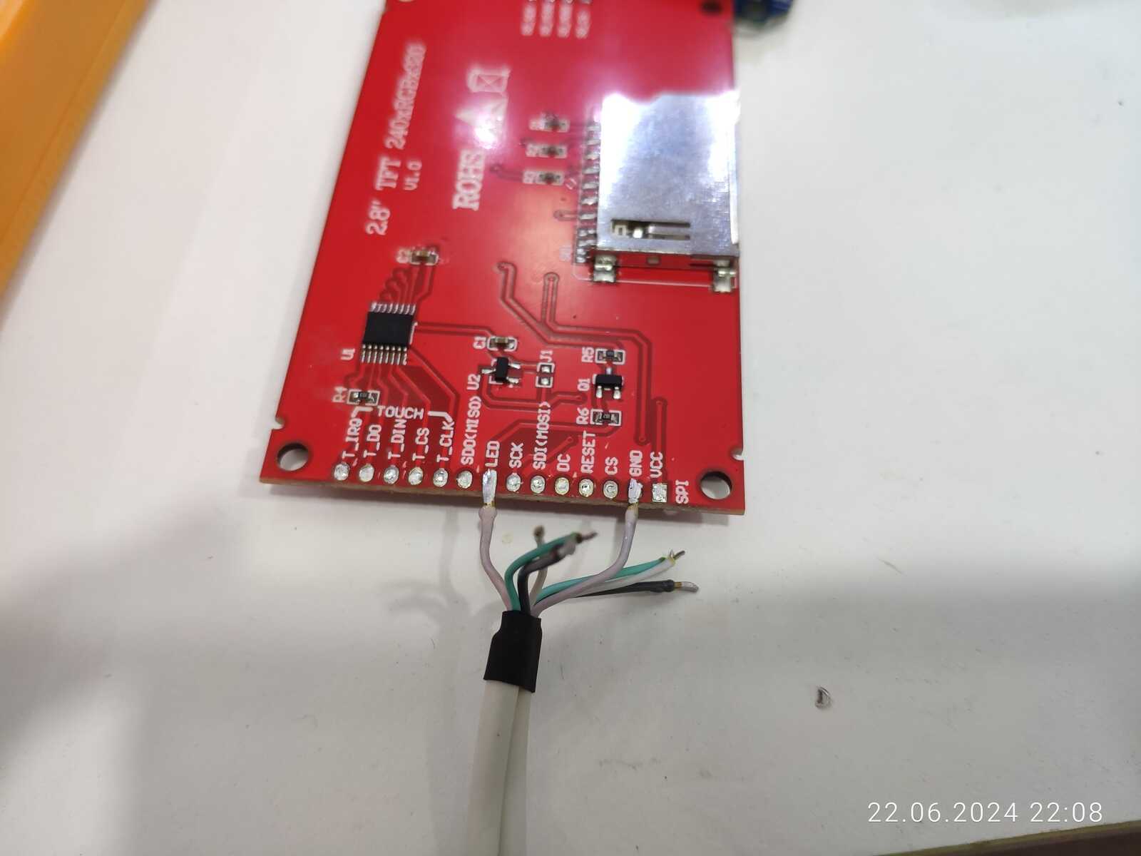 В общем ладно, главное чтобы работало как положено, допаиваю промежуточный модуль дисплея, делаю строго в последовательности как на дисплее, кроме "земли" и питания: