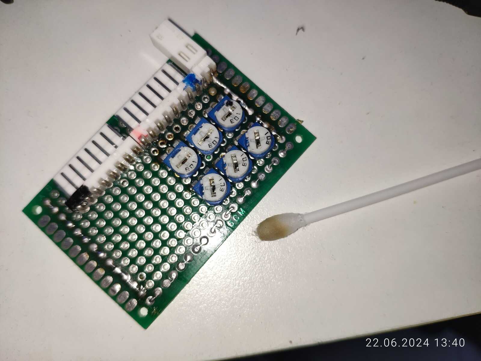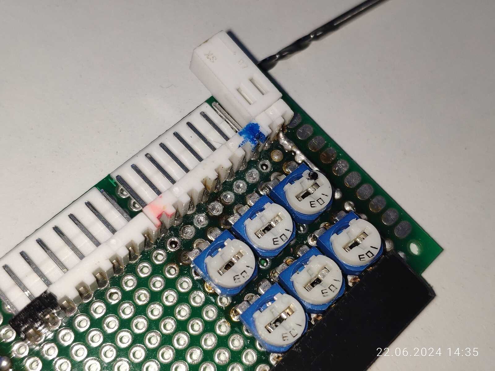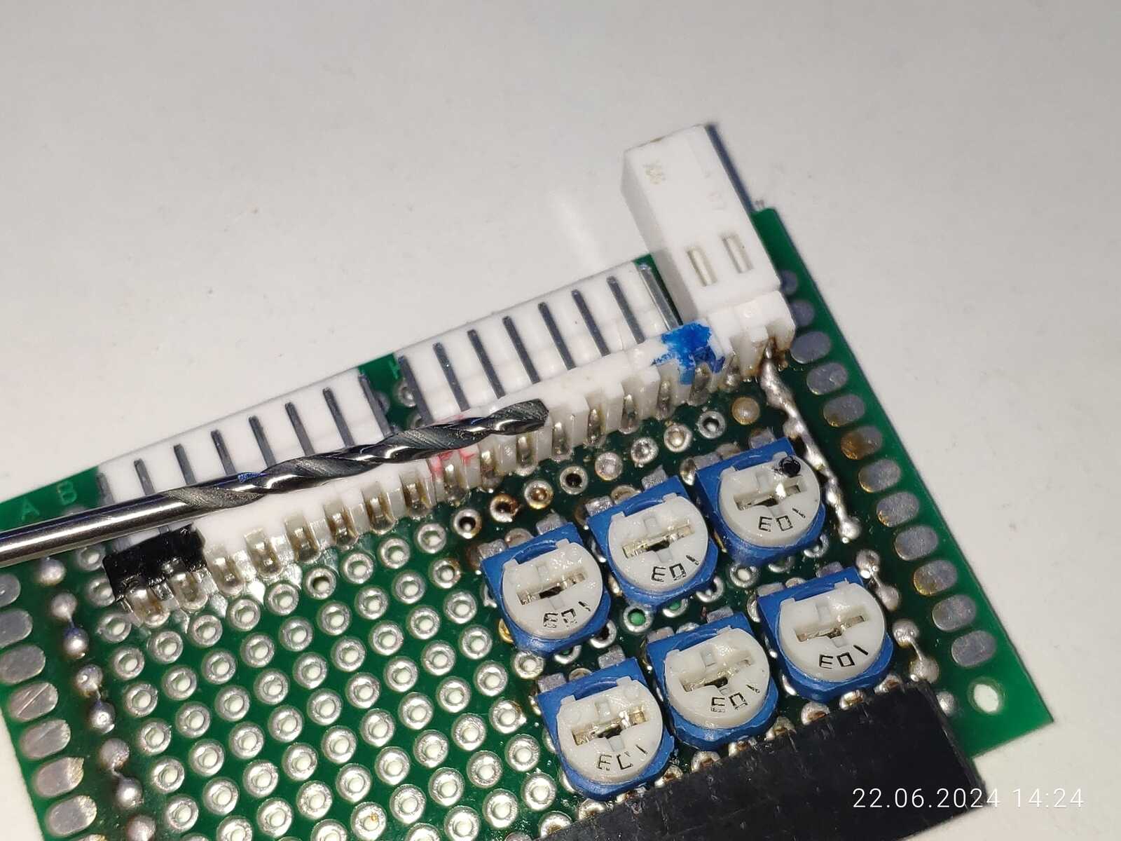 Далее нужно позаботиться о заранее подготовленных тестовых пятках, насверливаю, заливаю припоем, снова насверливаю, очищаю, готово, теперь можно щупом делать замеры на сигнальных линиях, что может пригодиться при настройке резистивных делителей: