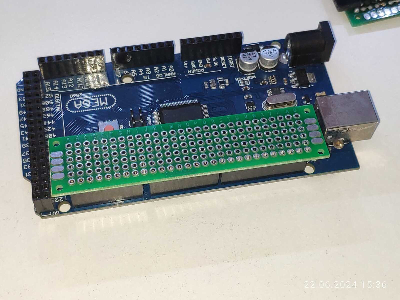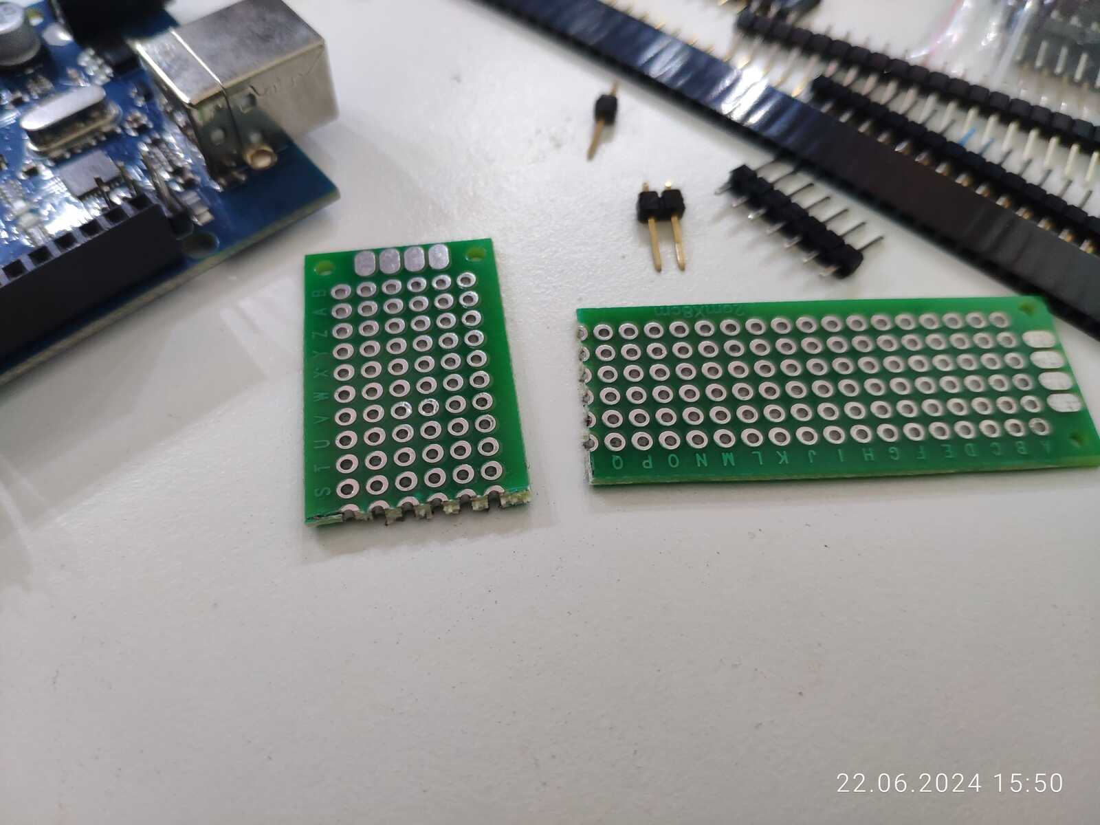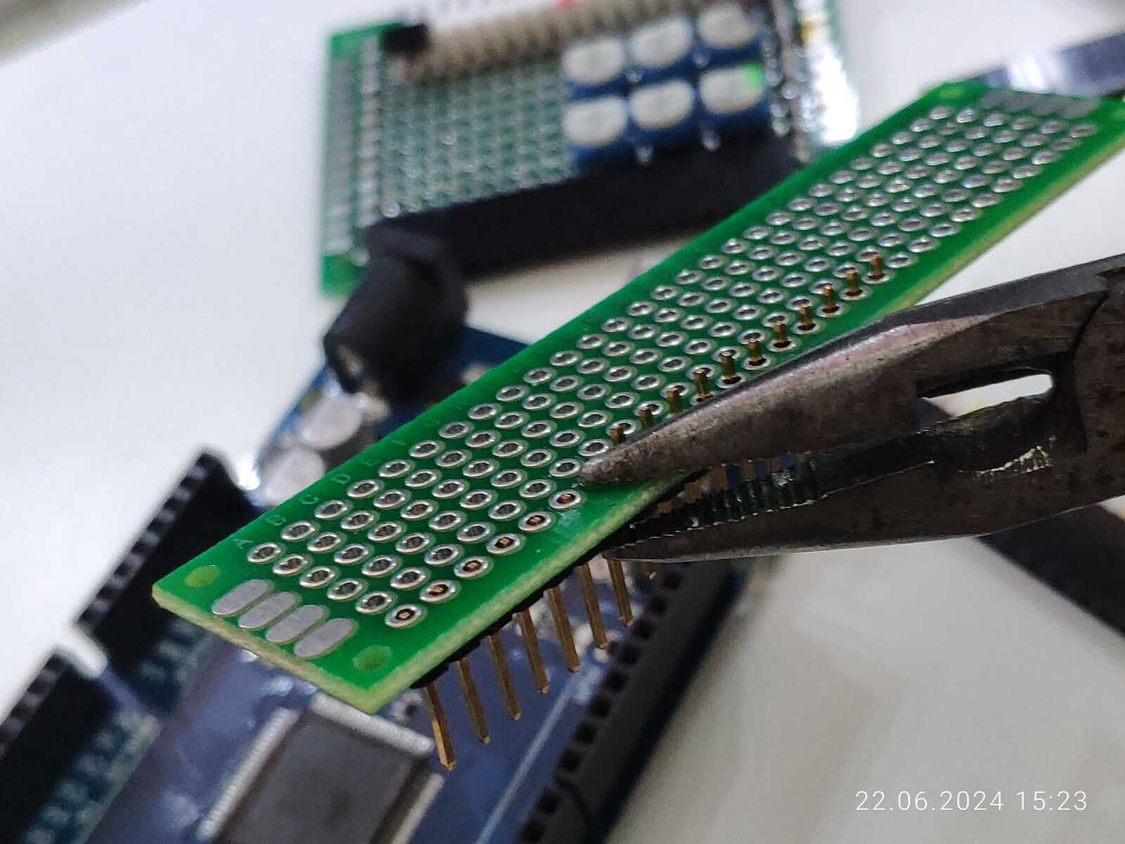 А ведь если подумать, у попавшегося под руку текстолита ровно столько дорожек, сколько нужно для подключения всего ряда контактов Arduino, какое удачное совпадение: