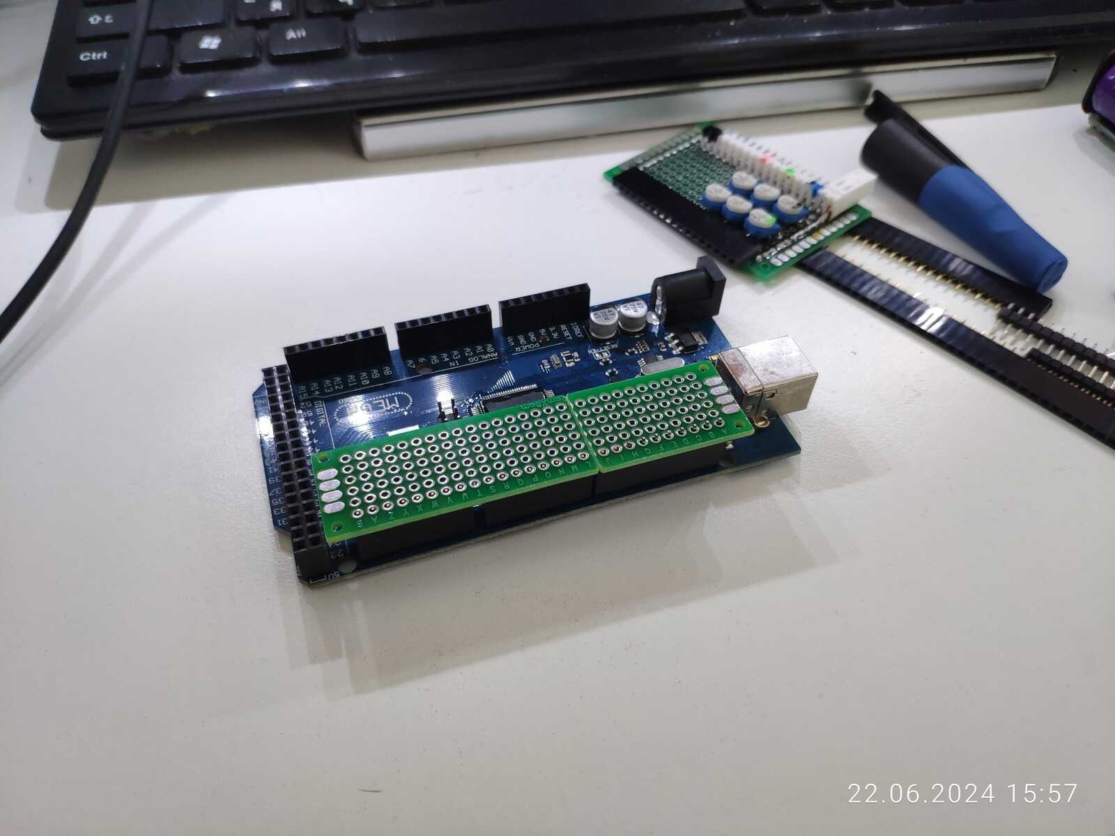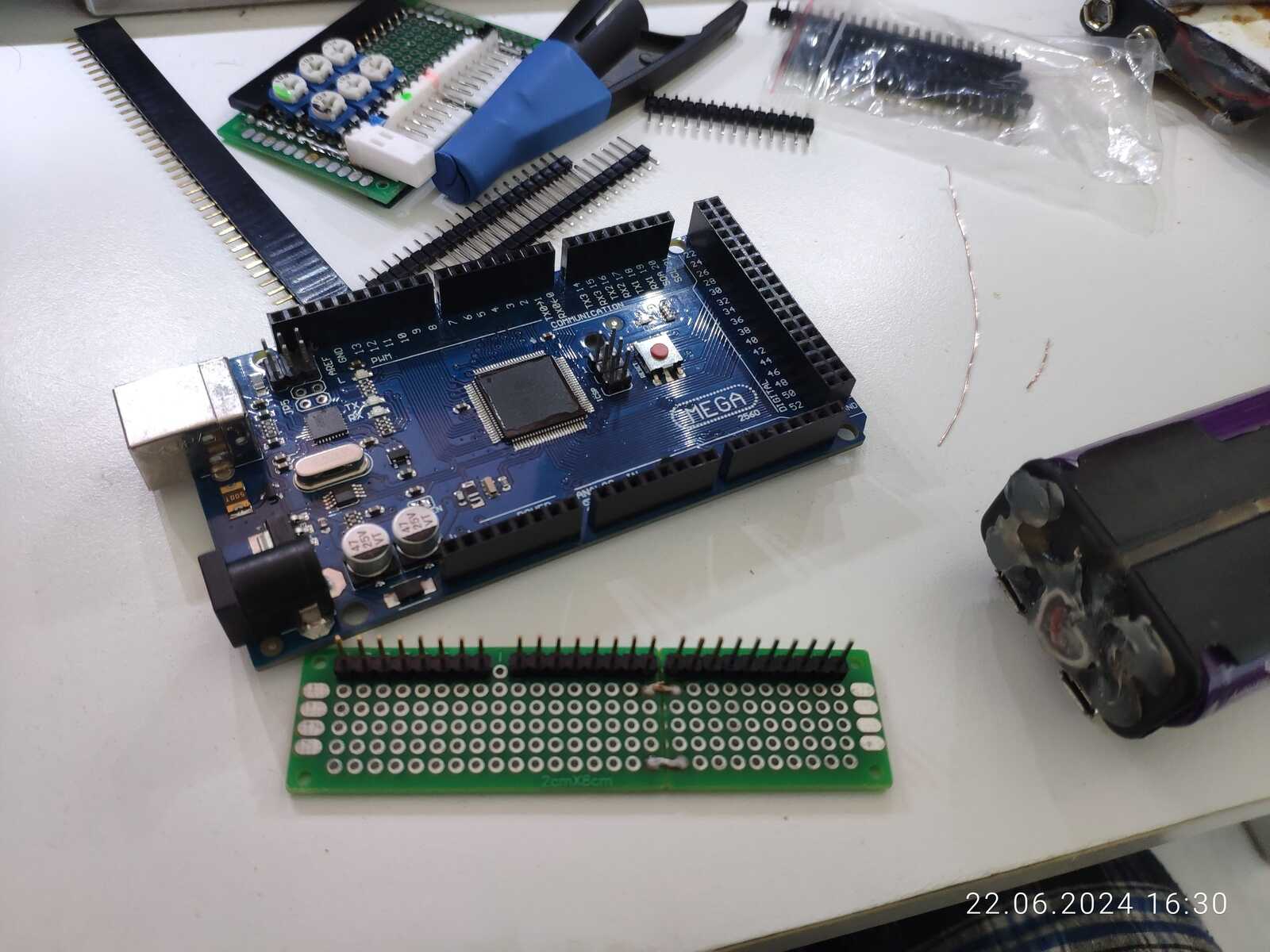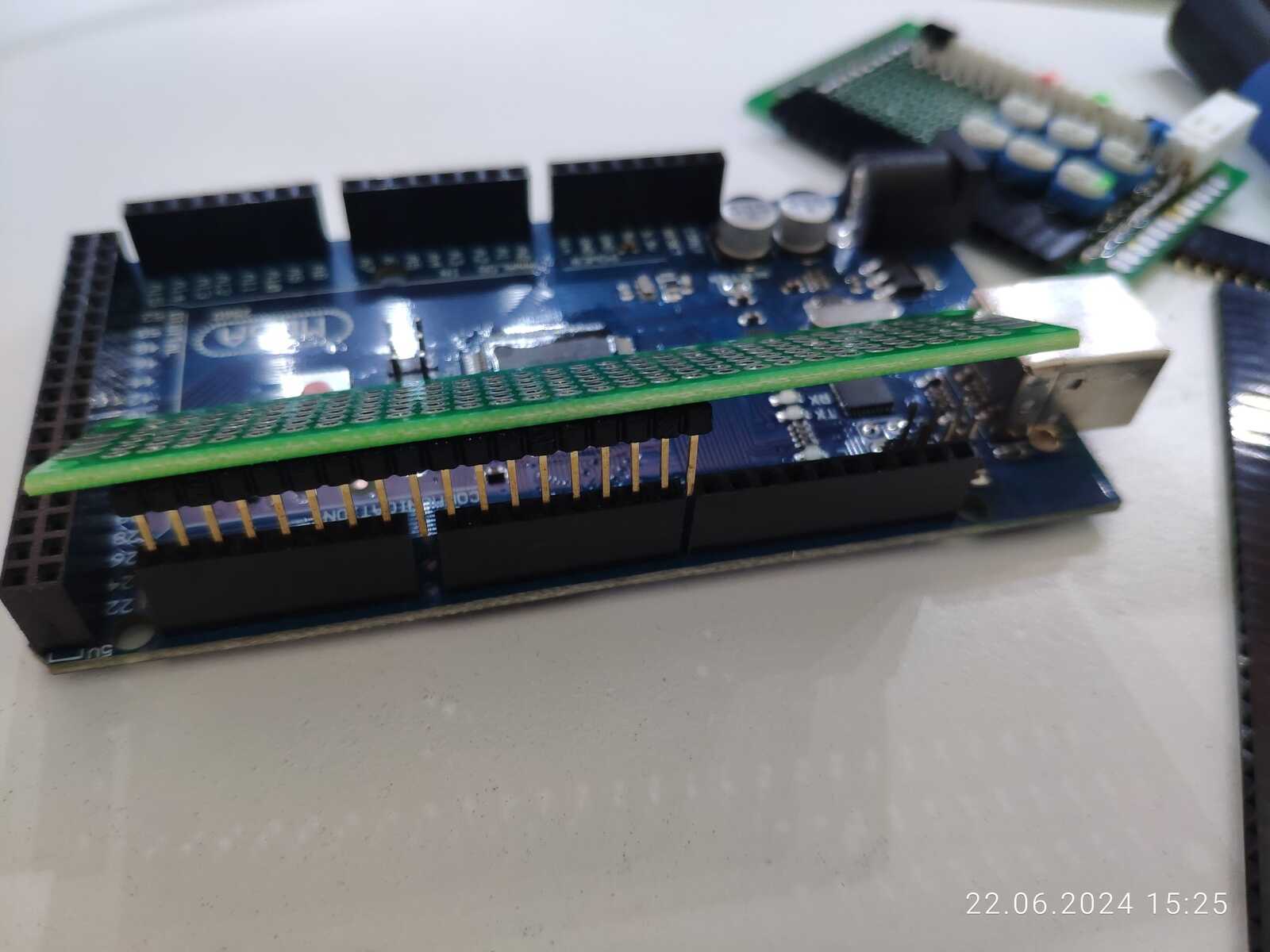 А ведь если подумать, у попавшегося под руку текстолита ровно столько дорожек, сколько нужно для подключения всего ряда контактов Arduino, какое удачное совпадение: