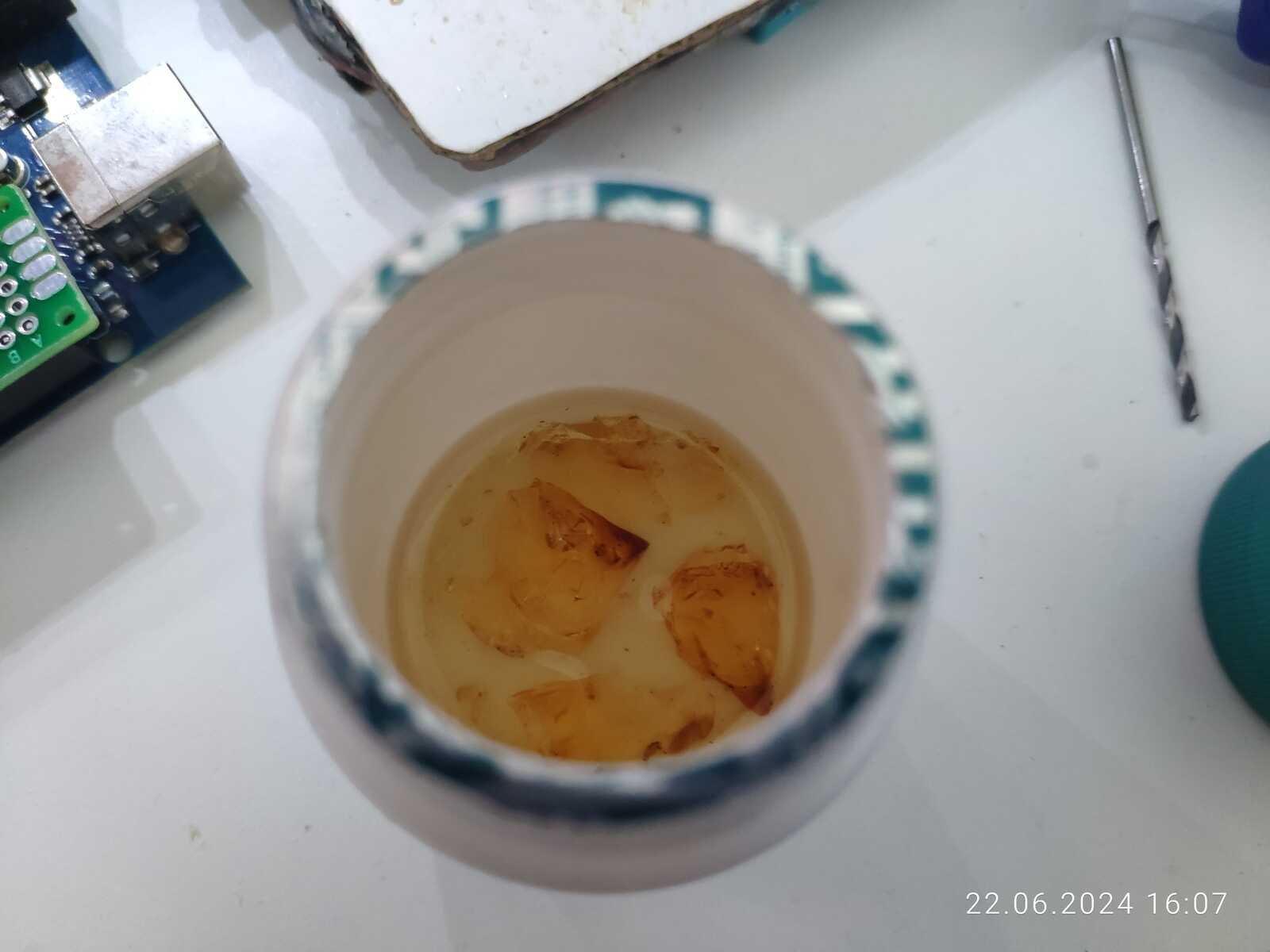Так что разбавляю канифоль в спирте, получаю в итоге спиртоканифоль, всё на глазок, ведь и так сойдёт: