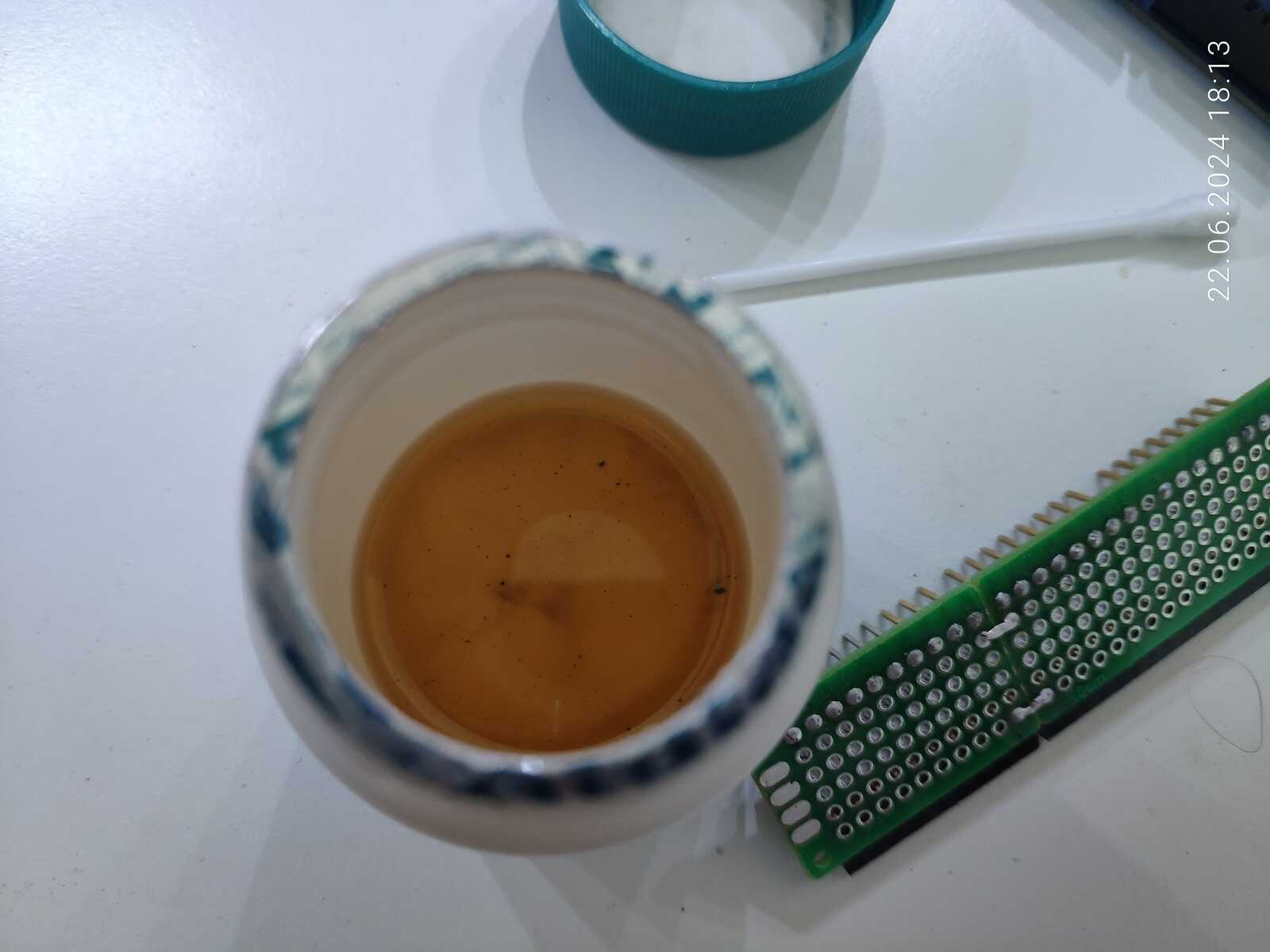 Только сейчас можно отмывать эту плату, ведь я не планирую больше паять на ней ничего: