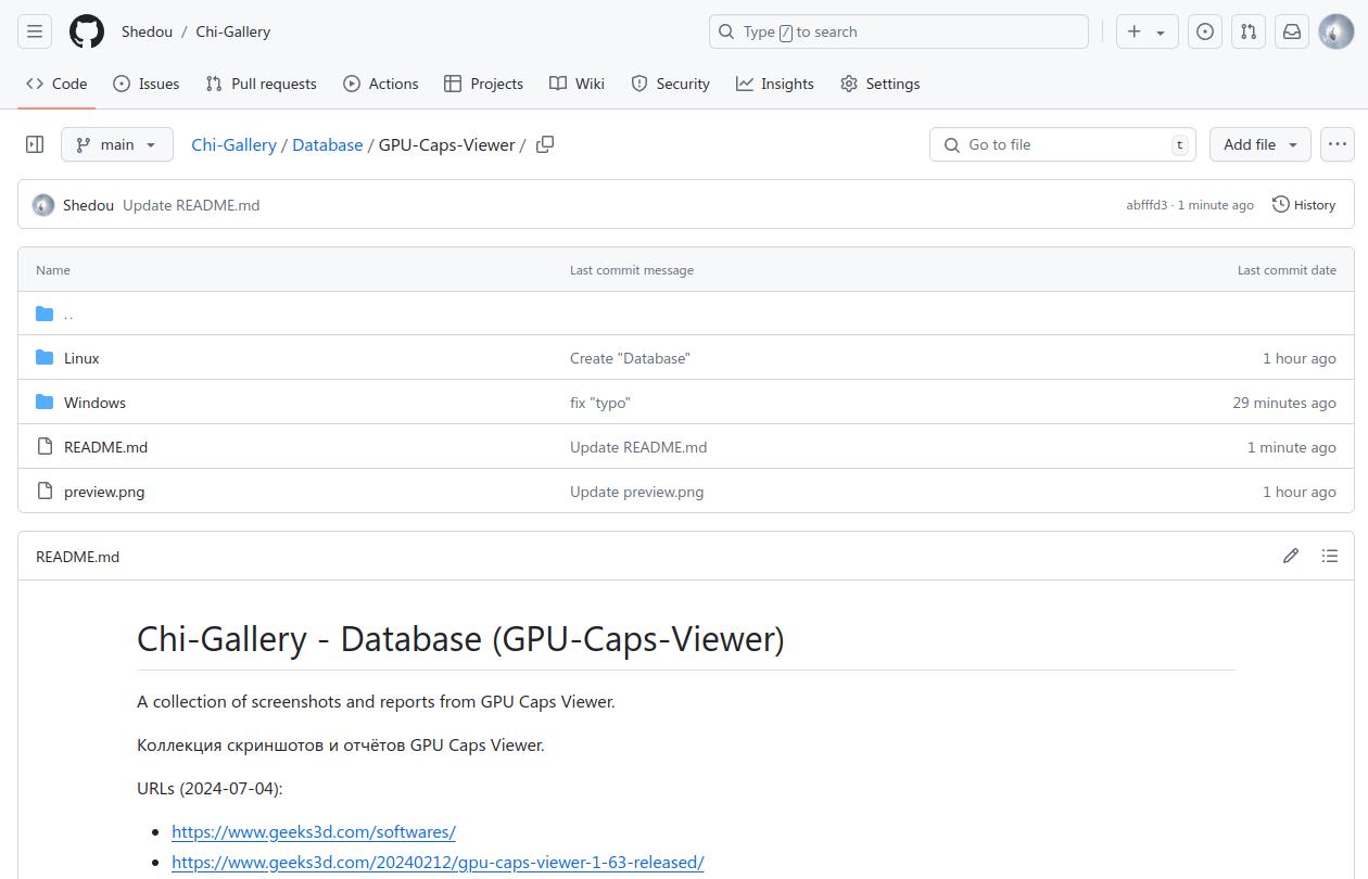 Создана база данных GPU Caps Viewer в репозитории Chi-Gallery