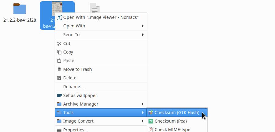 Как получить CRC32 хэш? В дистрибутиве Chimbalix это делается через контекстное меню: