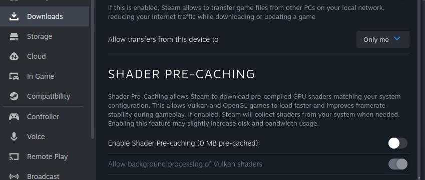 Меня это настолько достало, что просто удалил игры от Valve, а потом полез искать в интернете эту проблему, и оказалось, что я далеко не единственная жертва постоянно скачиваемого кэша шейдеров, и проблеме этой не один год (линукс для игр называется):