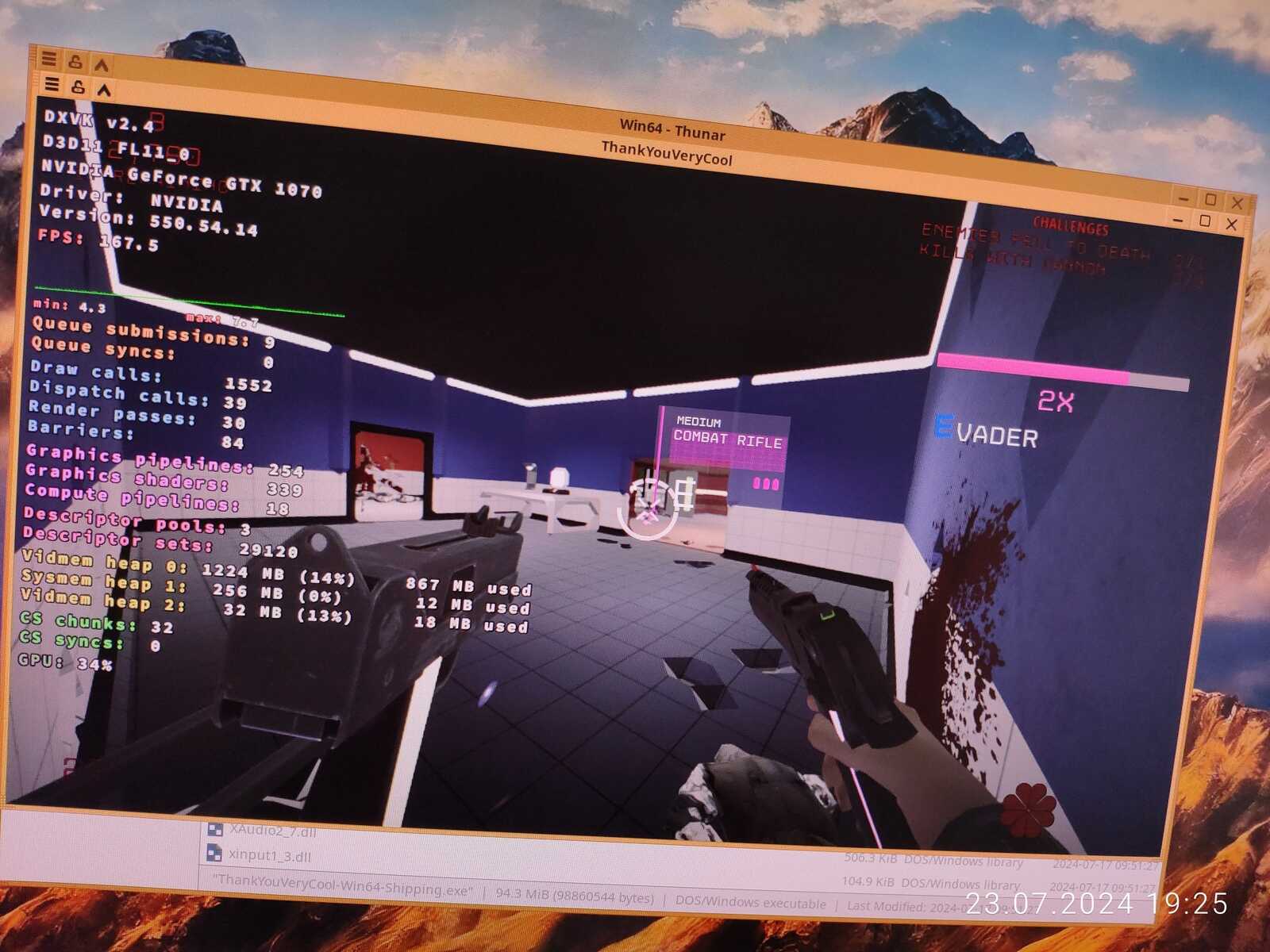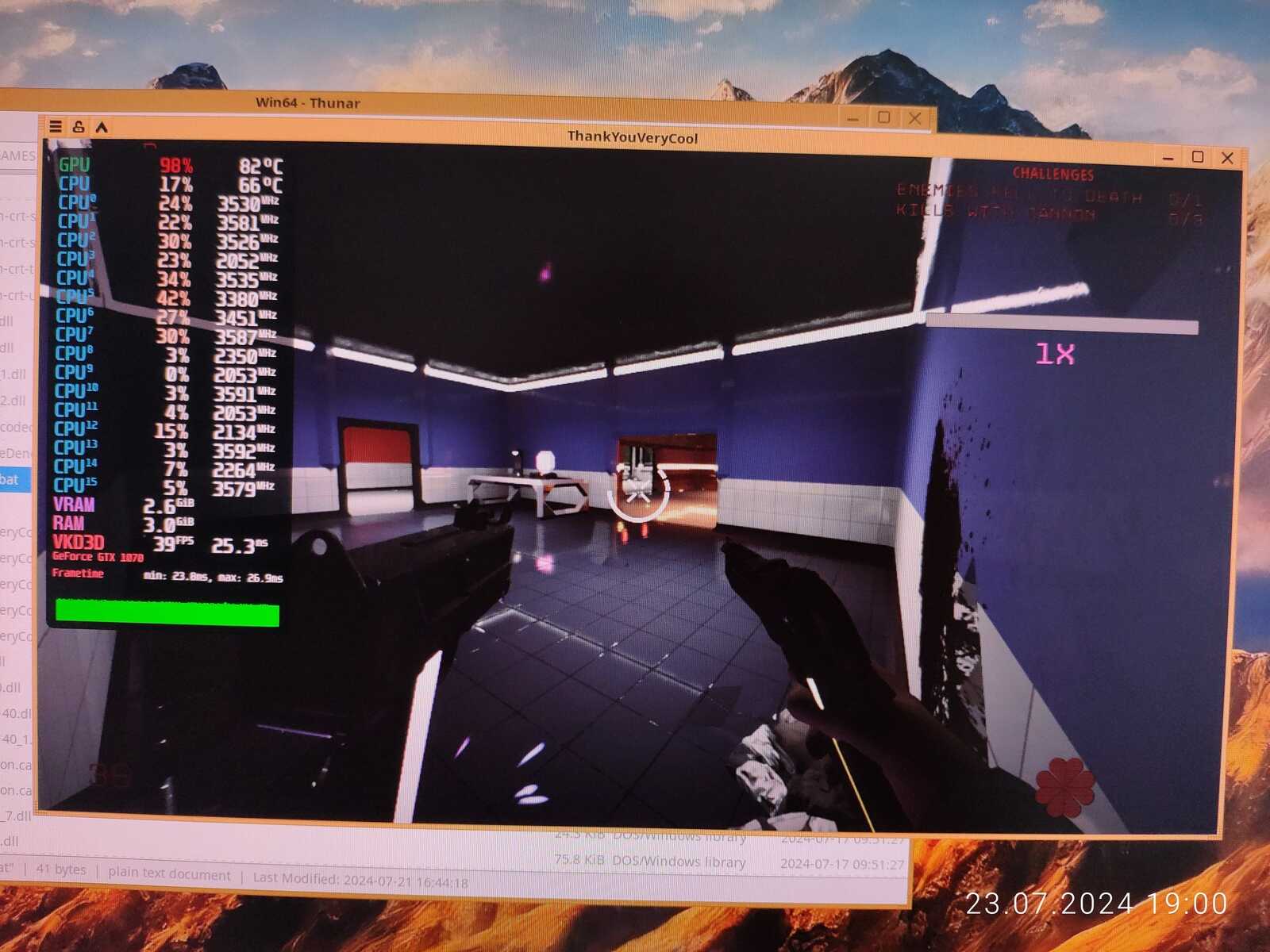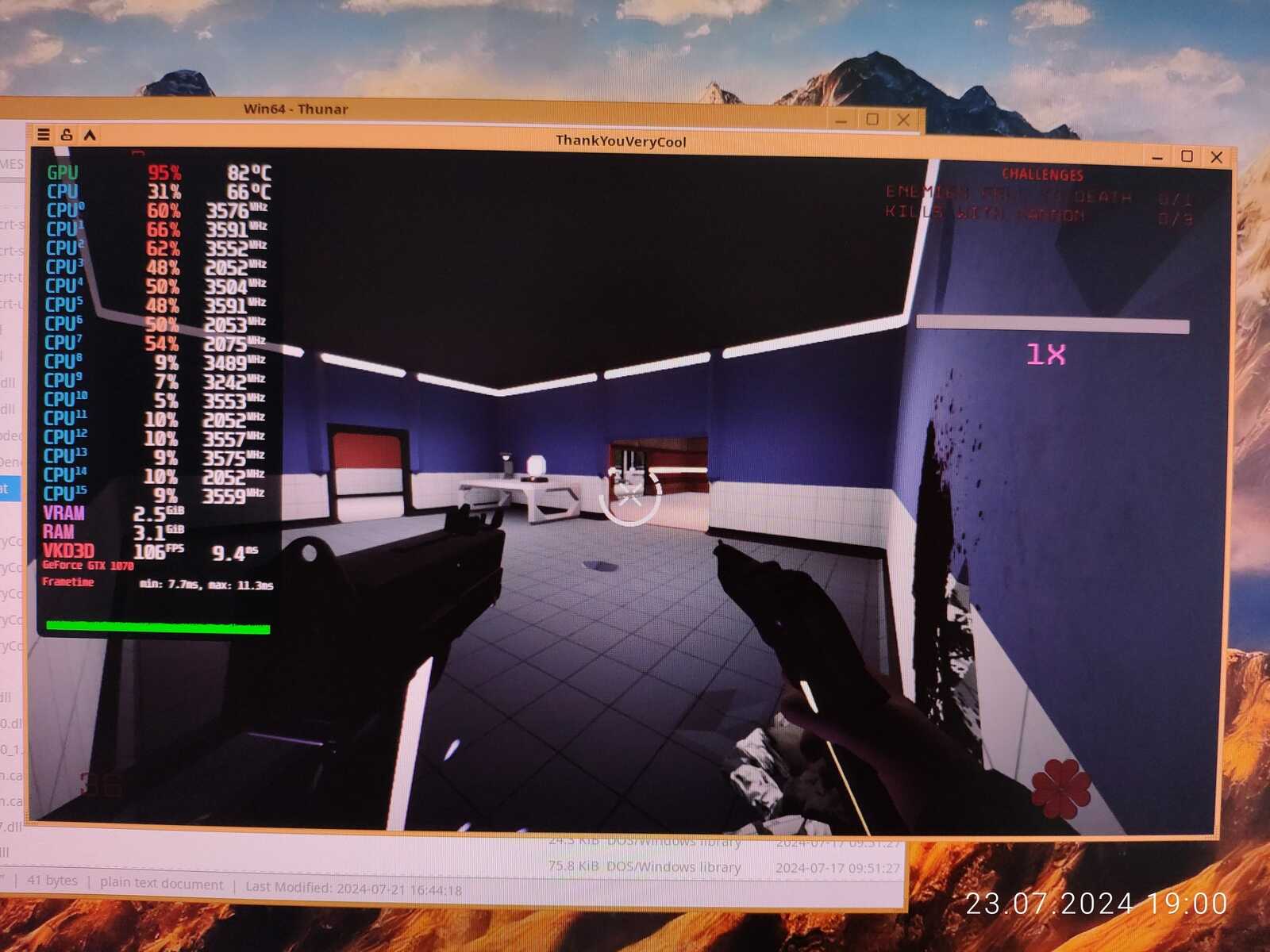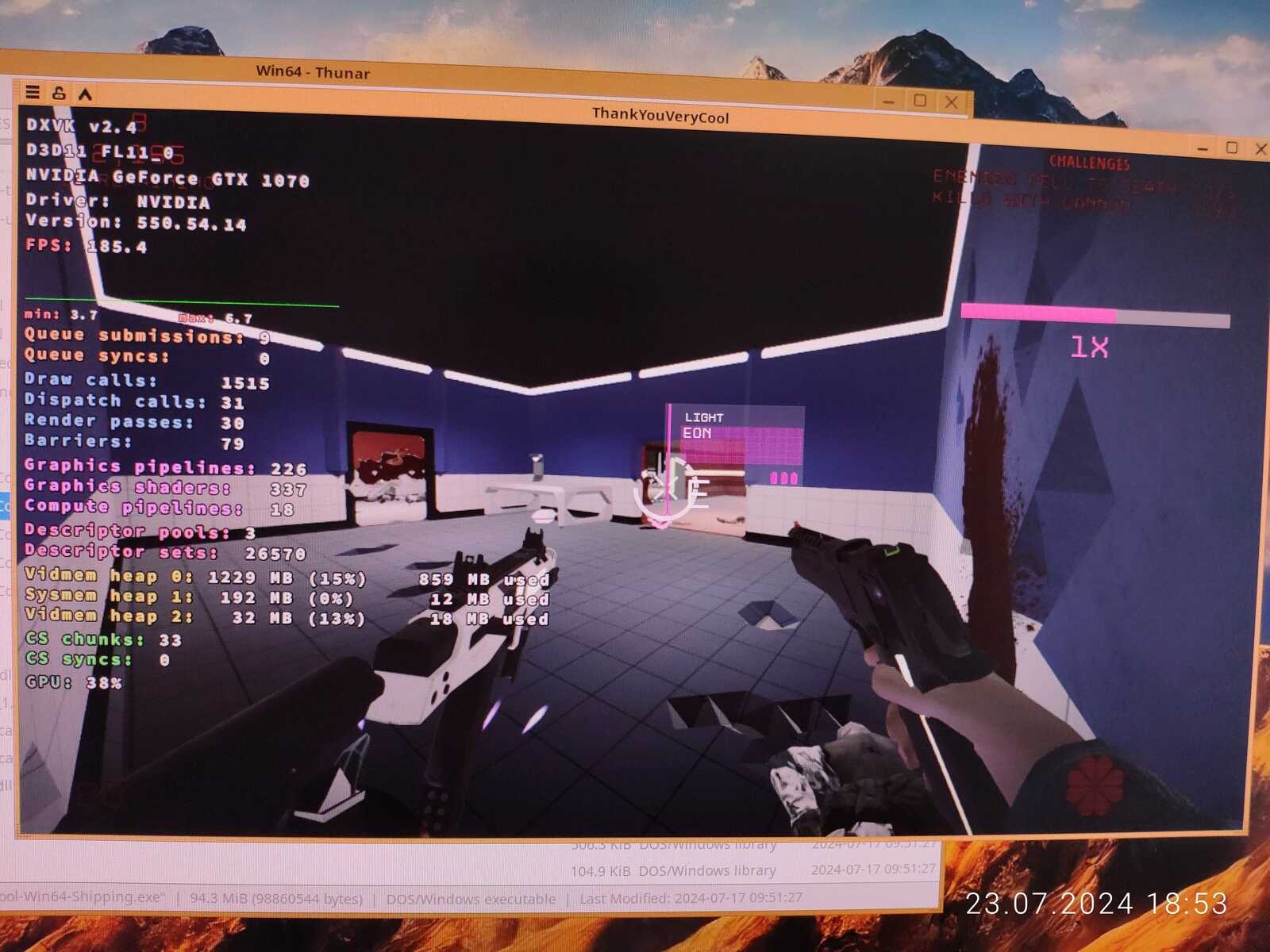 Почему так? Хоть про это уже и говорилось в первой части, но сейчас наглядно покажу почему линуксы гораздо менее стабильны, и это компиляция шейдеров, что может запуститься в любой момент игры, именно она провоцирует большинство фризов и статеров, как говорится, под линуксом нужно два раза пройти игру, первый ради компиляции шейдеров, а второй чтобы наконец поиграть: