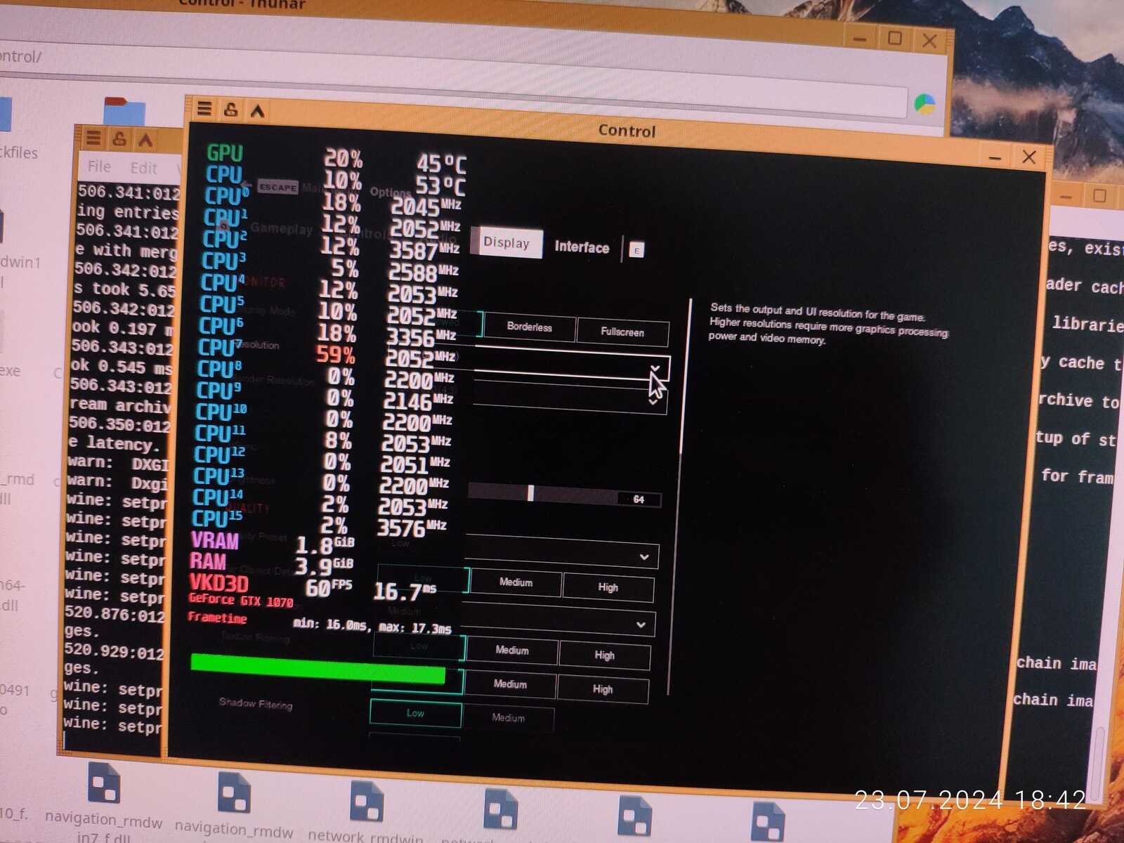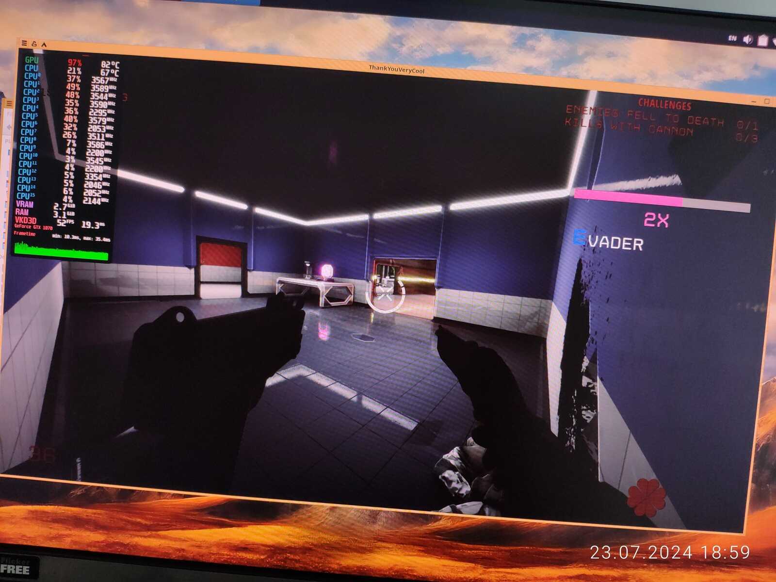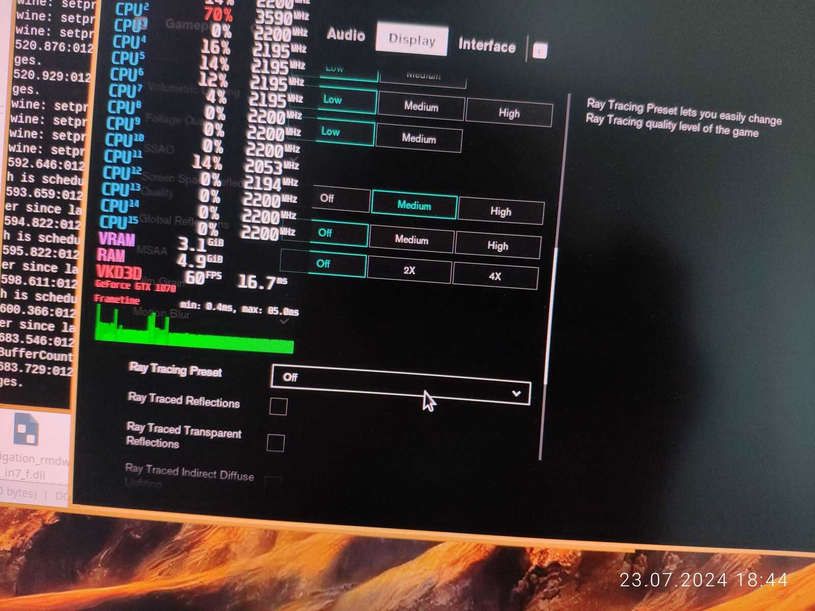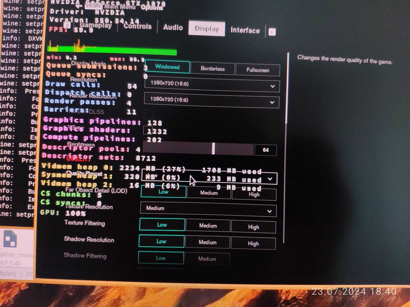 Почему так? Хоть про это уже и говорилось в первой части, но сейчас наглядно покажу почему линуксы гораздо менее стабильны, и это компиляция шейдеров, что может запуститься в любой момент игры, именно она провоцирует большинство фризов и статеров, как говорится, под линуксом нужно два раза пройти игру, первый ради компиляции шейдеров, а второй чтобы наконец поиграть: