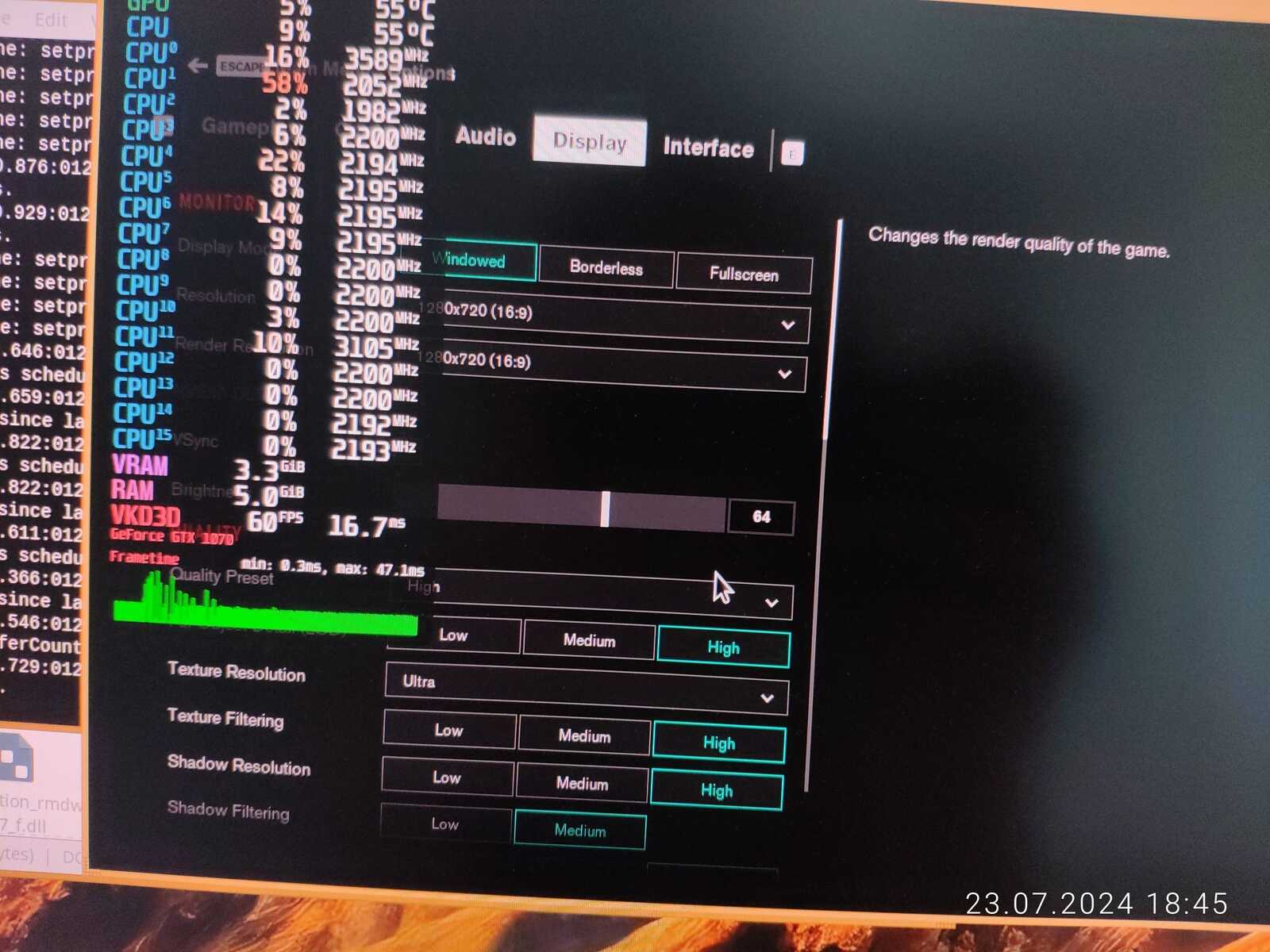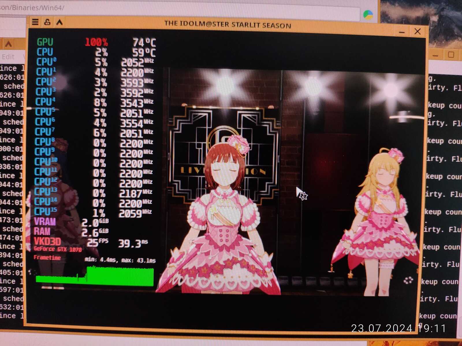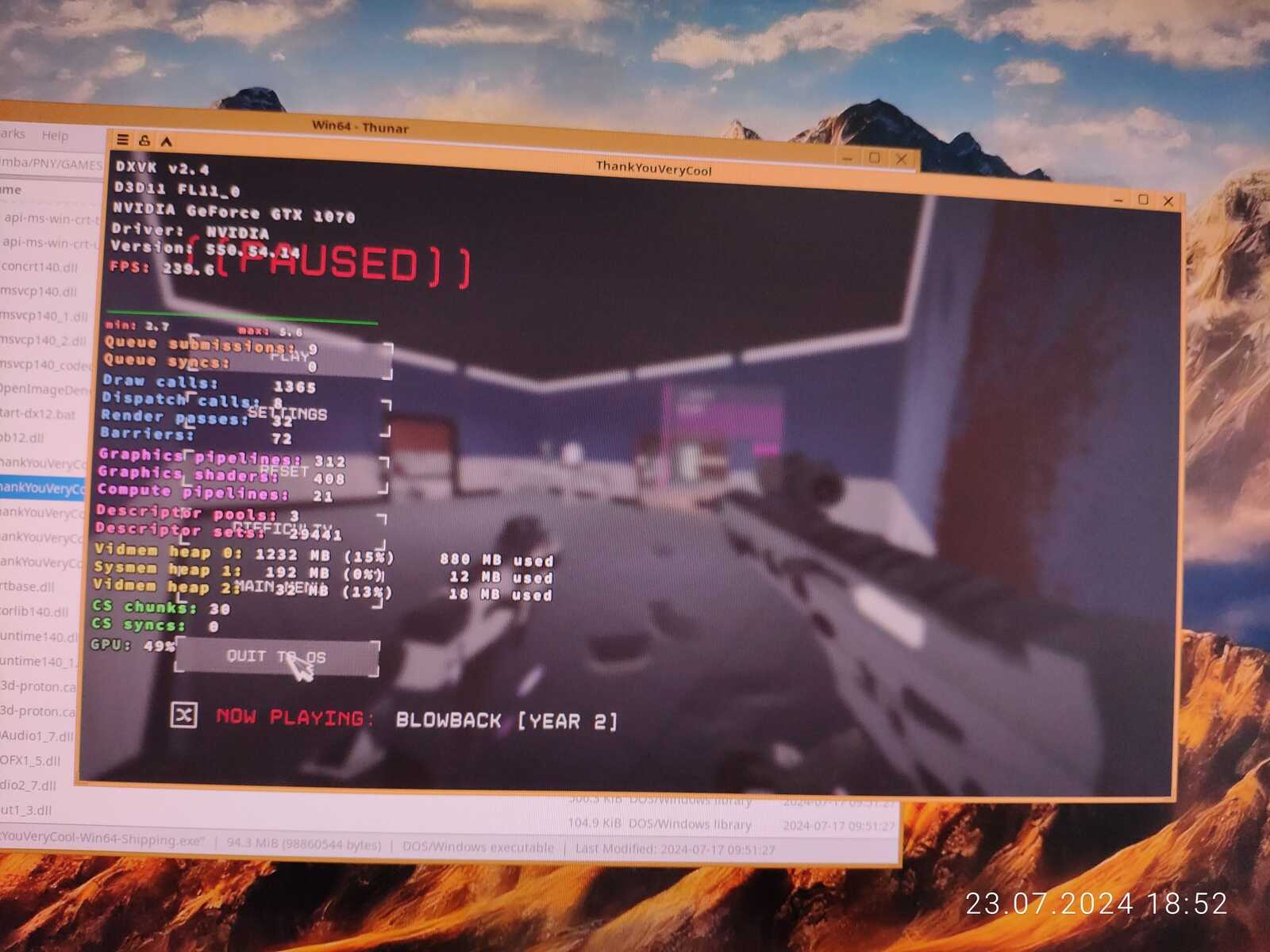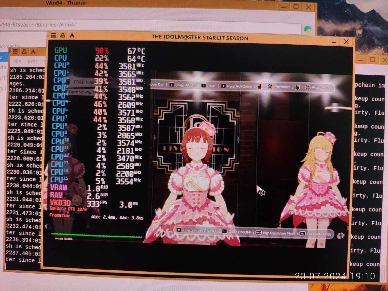 Почему так? Хоть про это уже и говорилось в первой части, но сейчас наглядно покажу почему линуксы гораздо менее стабильны, и это компиляция шейдеров, что может запуститься в любой момент игры, именно она провоцирует большинство фризов и статеров, как говорится, под линуксом нужно два раза пройти игру, первый ради компиляции шейдеров, а второй чтобы наконец поиграть: