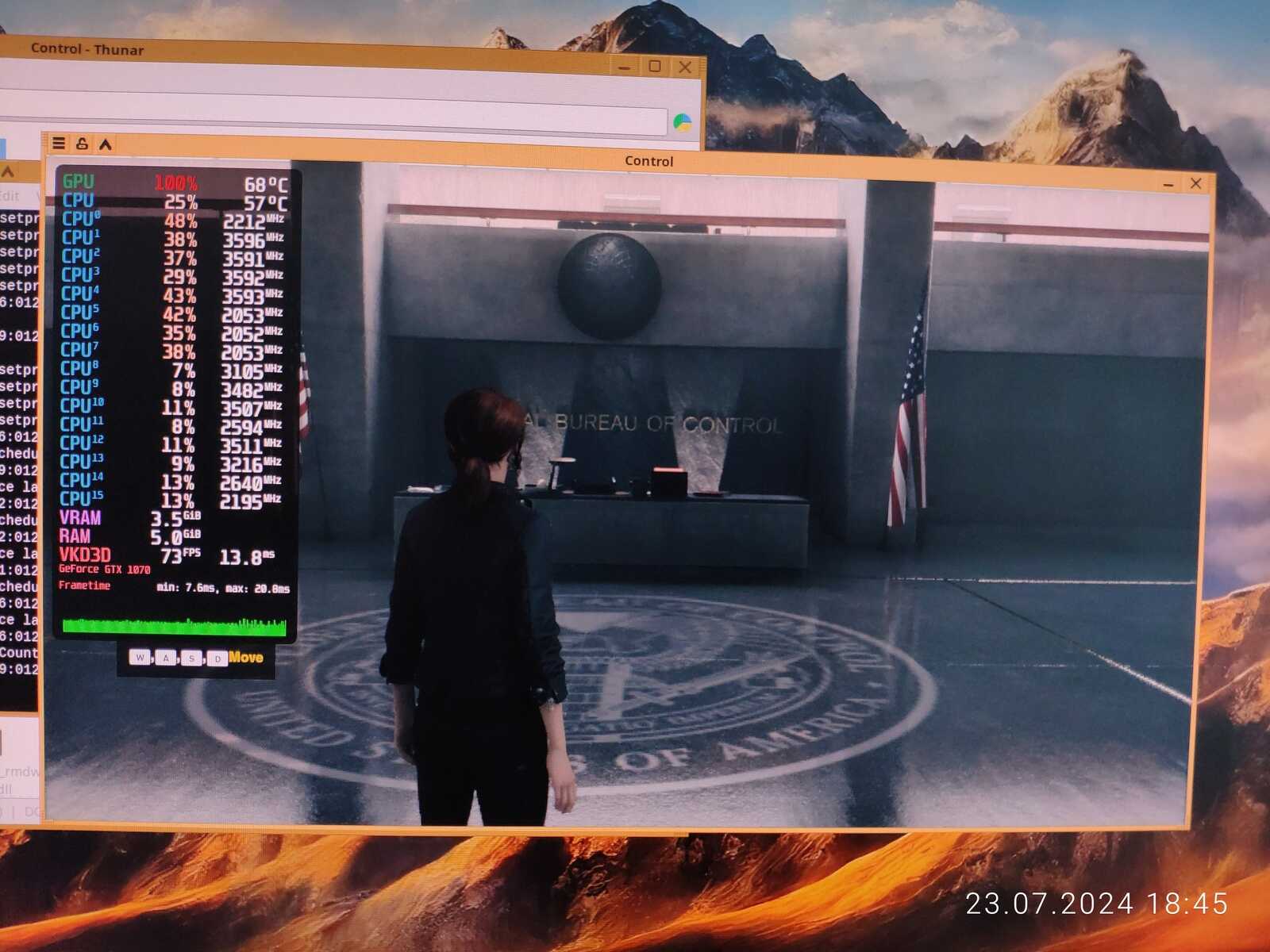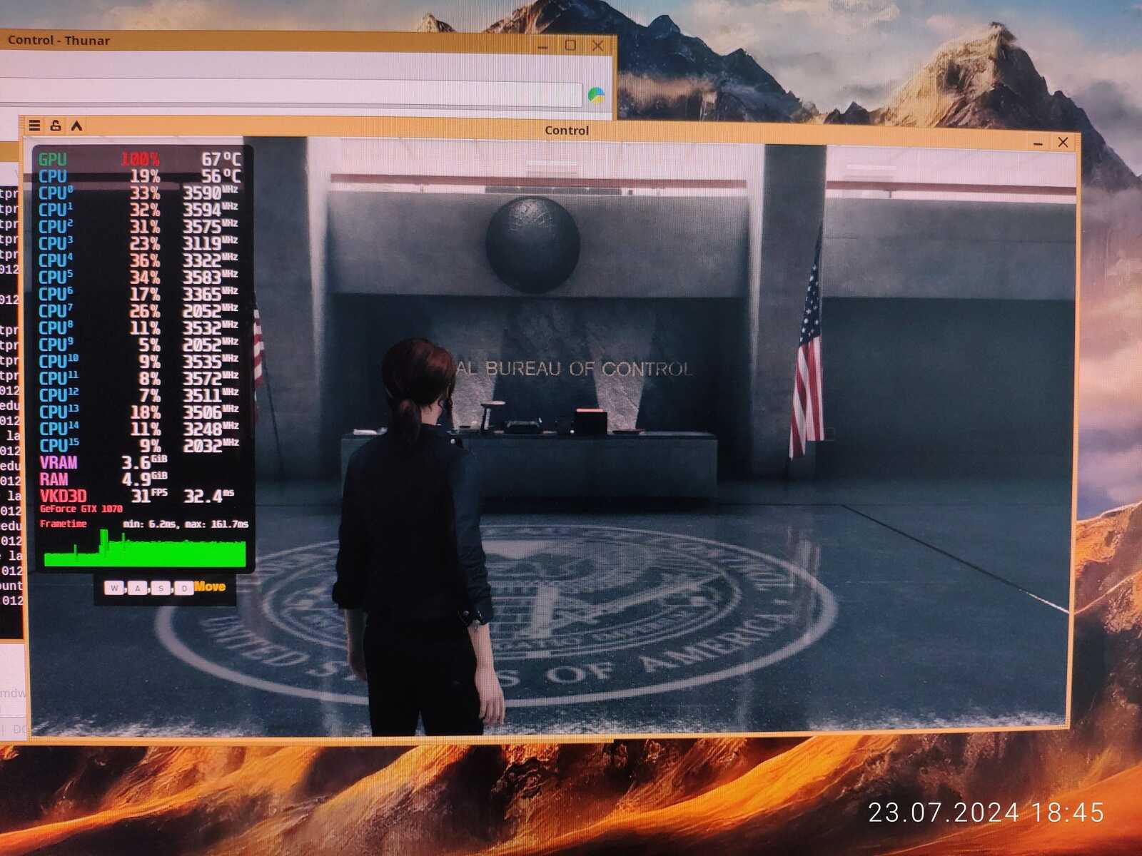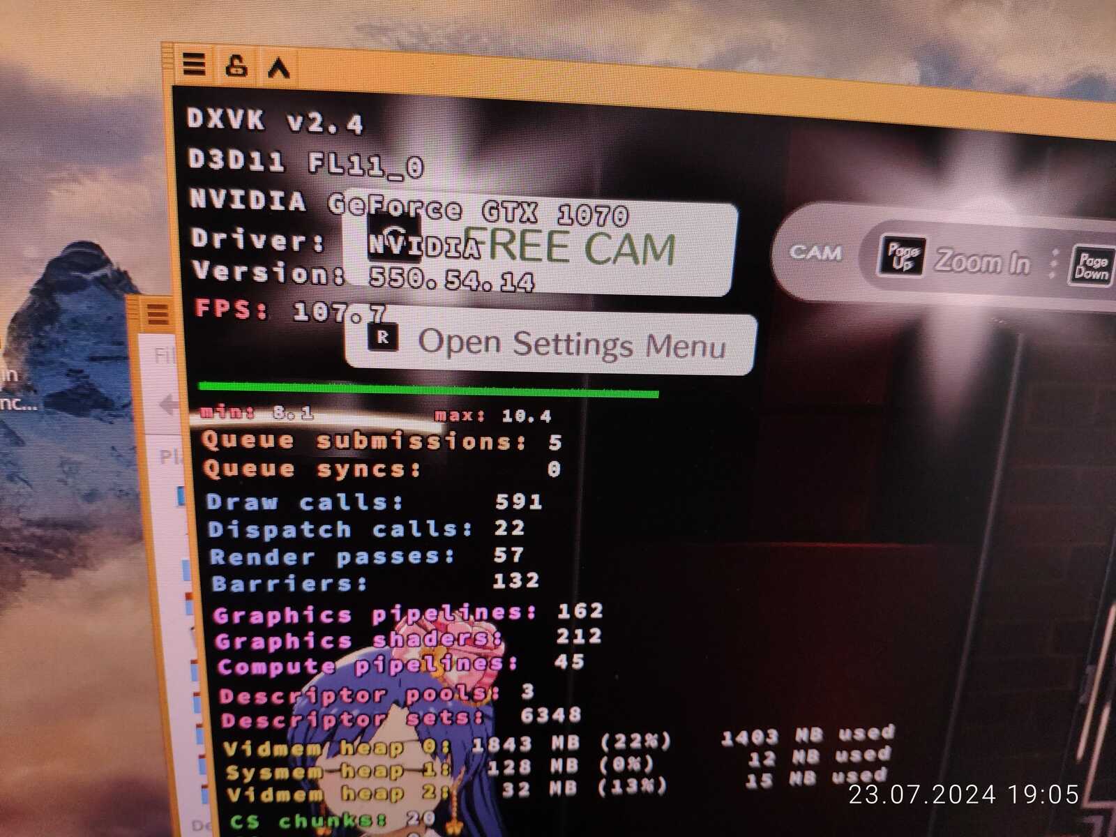 Отдельно следует упомянуть фризы и статеры при использовании DXVK / VKD3D, если в среде Windows прослойка VKD3D вообще не работает, а в DXVK нет никакой нужны, то в среде Linux от них никуда не деться, увы, один раз играем ради компиляции шейдеров, и только на второй раз ради нормального прохождения, разумеется с учётом более низкого FPS в большинстве случаев, чем могло быть если бы игра работала в среде Windows...