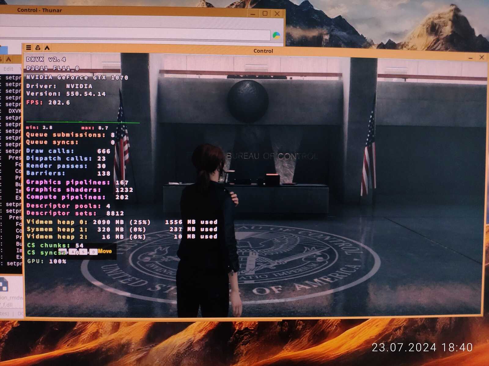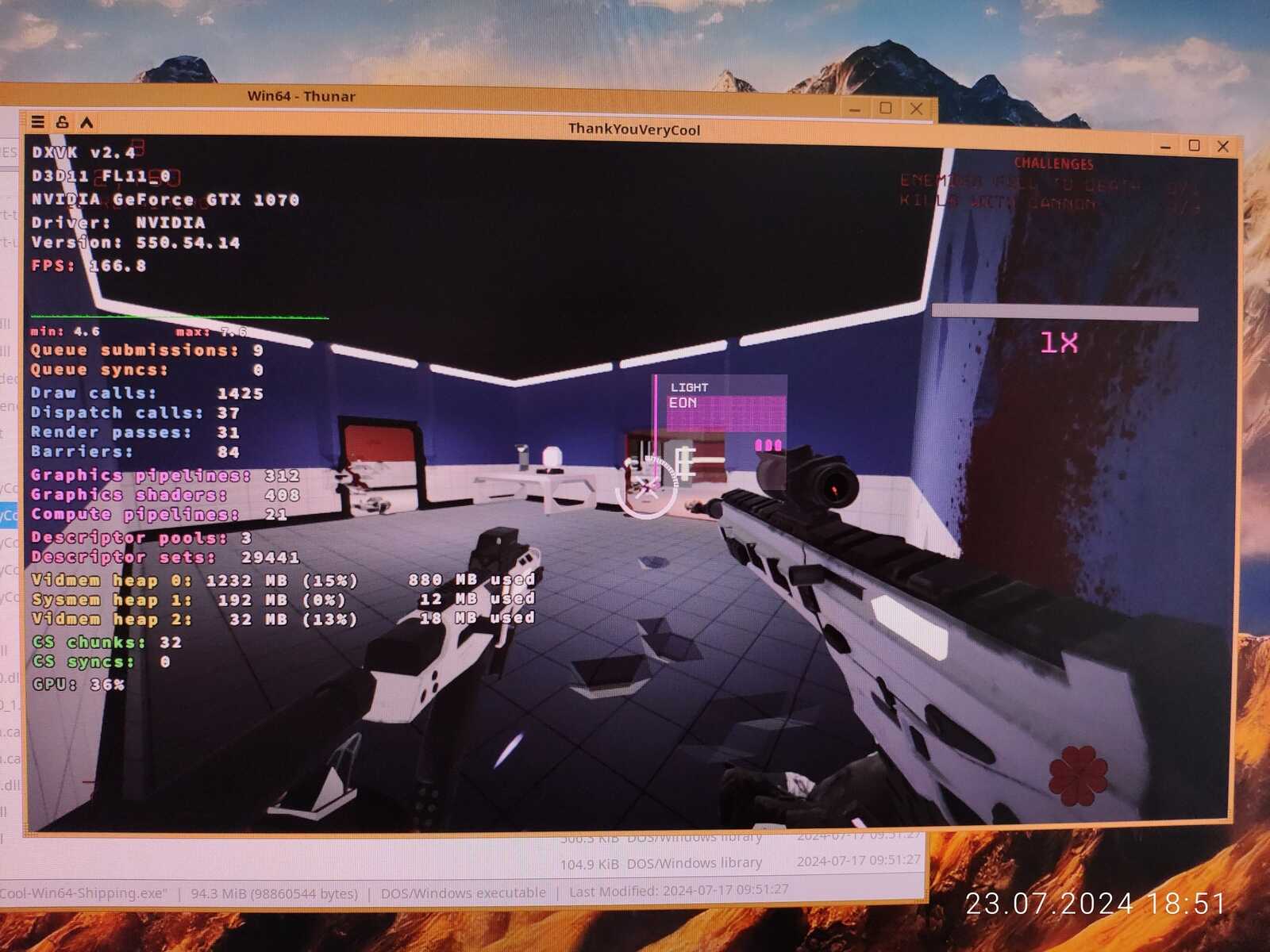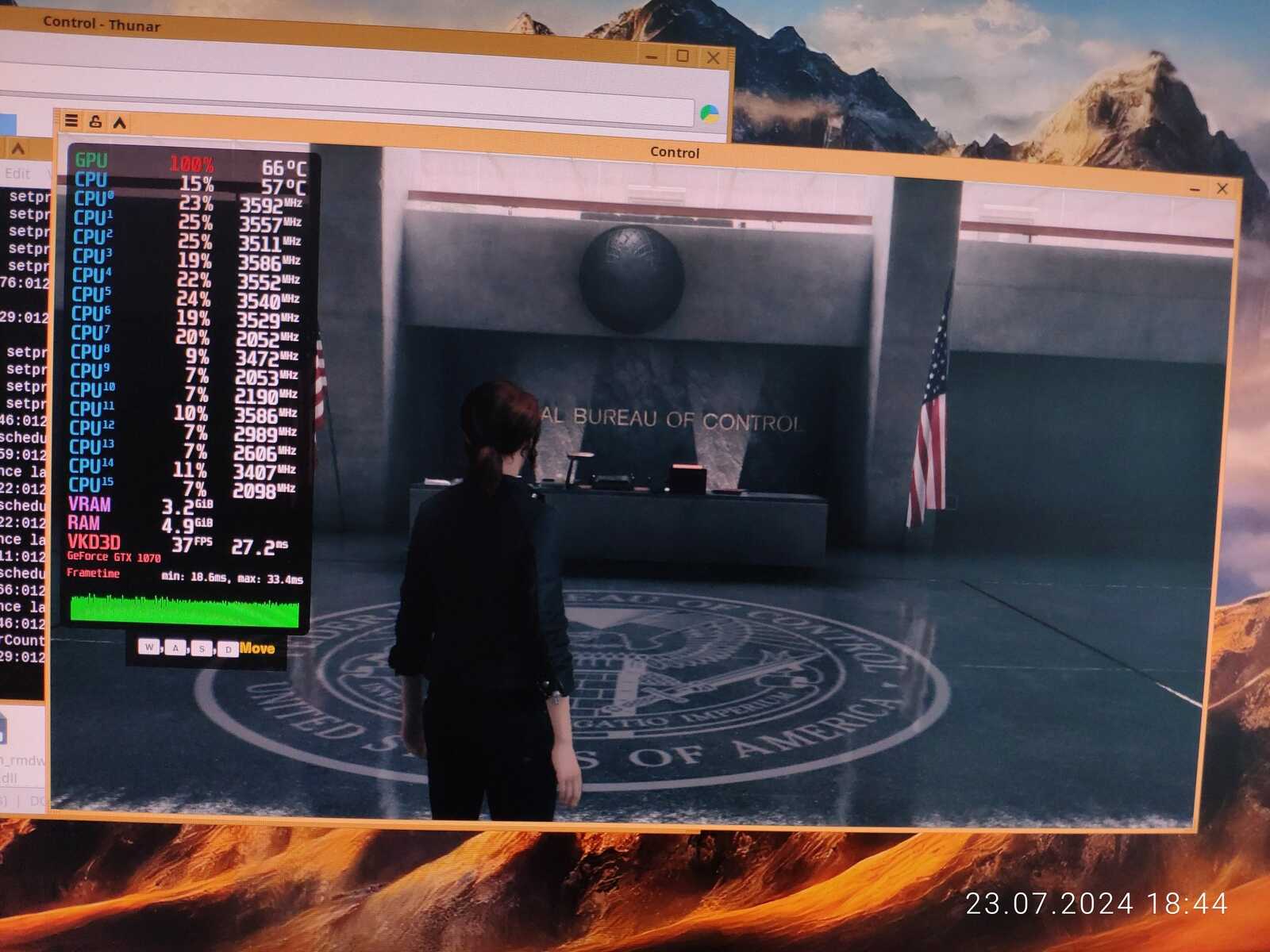 Отдельно следует упомянуть фризы и статеры при использовании DXVK / VKD3D, если в среде Windows прослойка VKD3D вообще не работает, а в DXVK нет никакой нужны, то в среде Linux от них никуда не деться, увы, один раз играем ради компиляции шейдеров, и только на второй раз ради нормального прохождения, разумеется с учётом более низкого FPS в большинстве случаев, чем могло быть если бы игра работала в среде Windows...