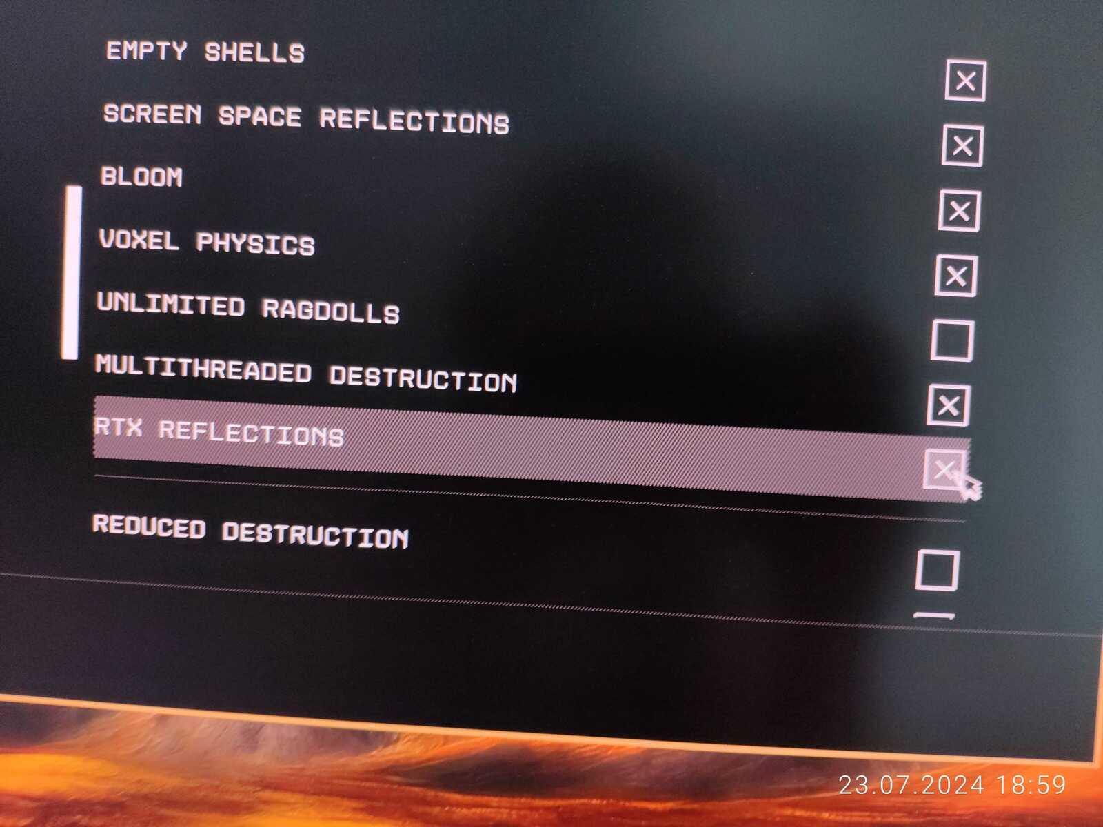 Теперь результаты с DirectX 12 API, и тут случился неприятный момент, я случайно нажал кнопку "restart" вместо "settings", и пришлось заново собирать результаты... Досадная ошибка, но не страшно, на высоких настройках имеем 52 FPS, с трассировкой лучей 18 FPS, аналогичные результаты были при первой неудачной попытке: