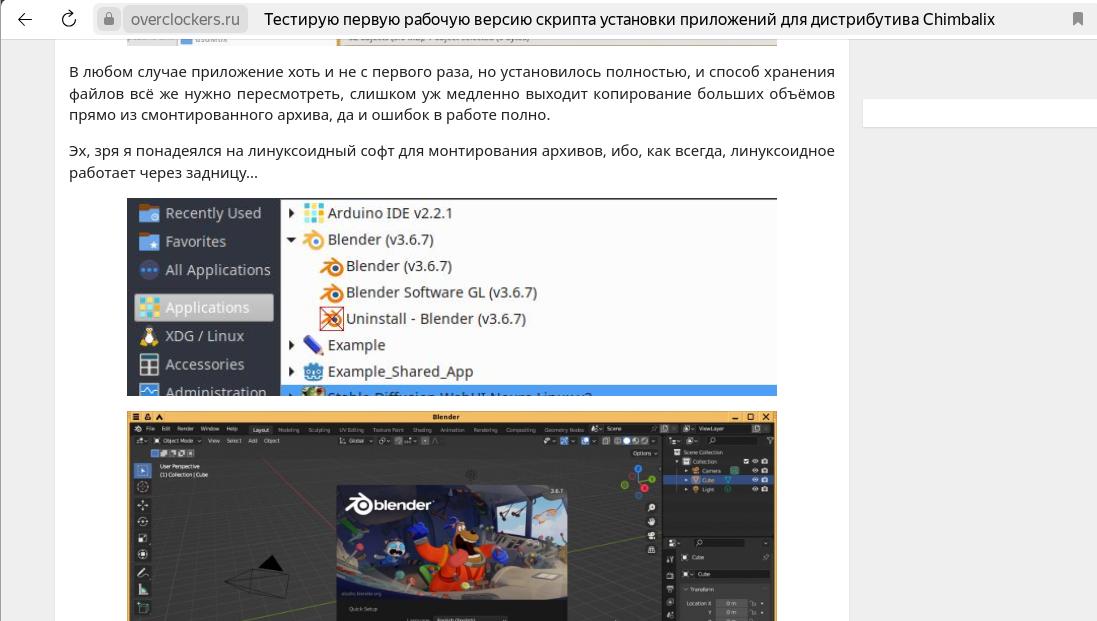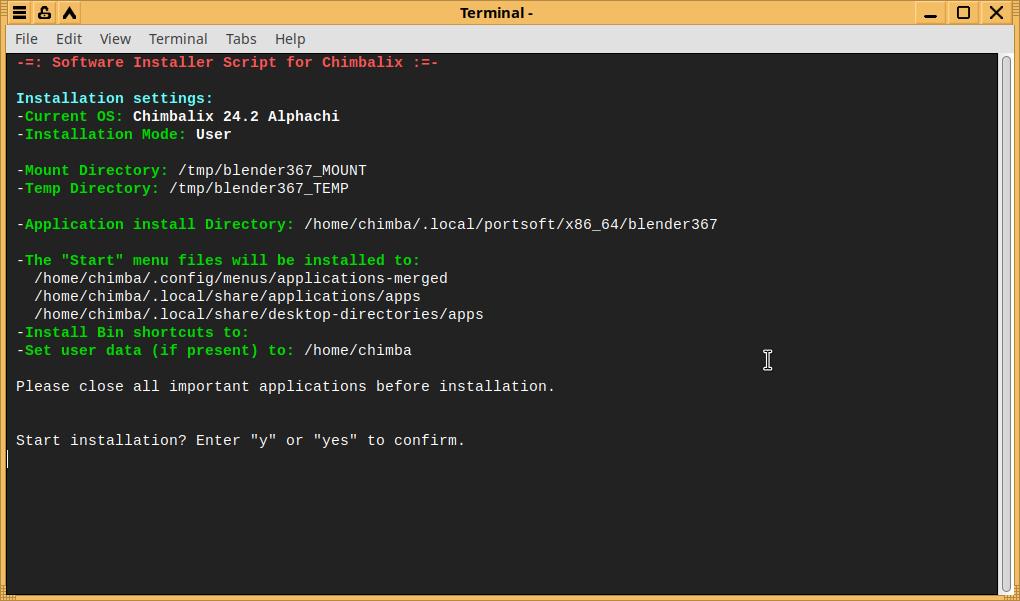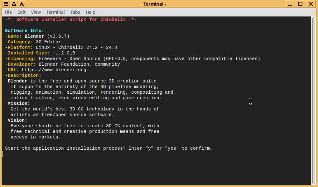 Тестирую первую рабочую версию скрипта установки приложений для дистрибутива Chimbalix
