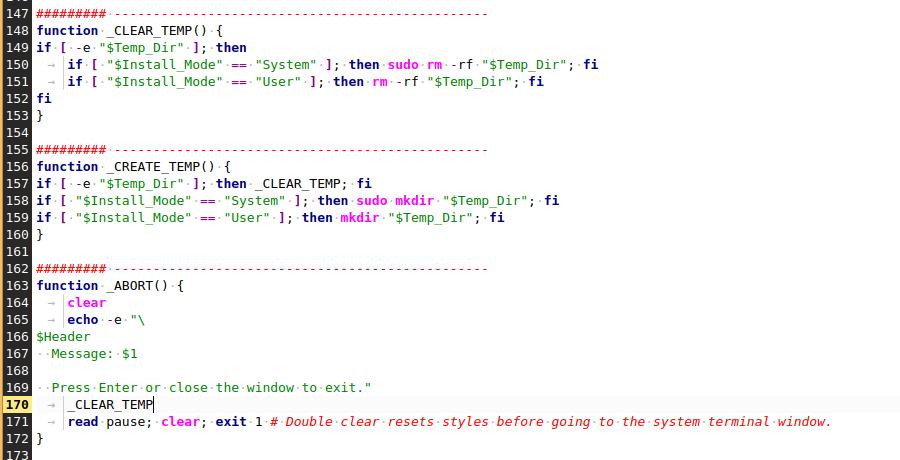 Так как в этот раз не будет происходить монтирования архивов, то и функции контроля за этим делом тоже не нужны, однако временный каталог никуда не исчезает, и его нужно контролировать, потому нужно написать новую функцию _CLEAR_TEMP для этой задачи...