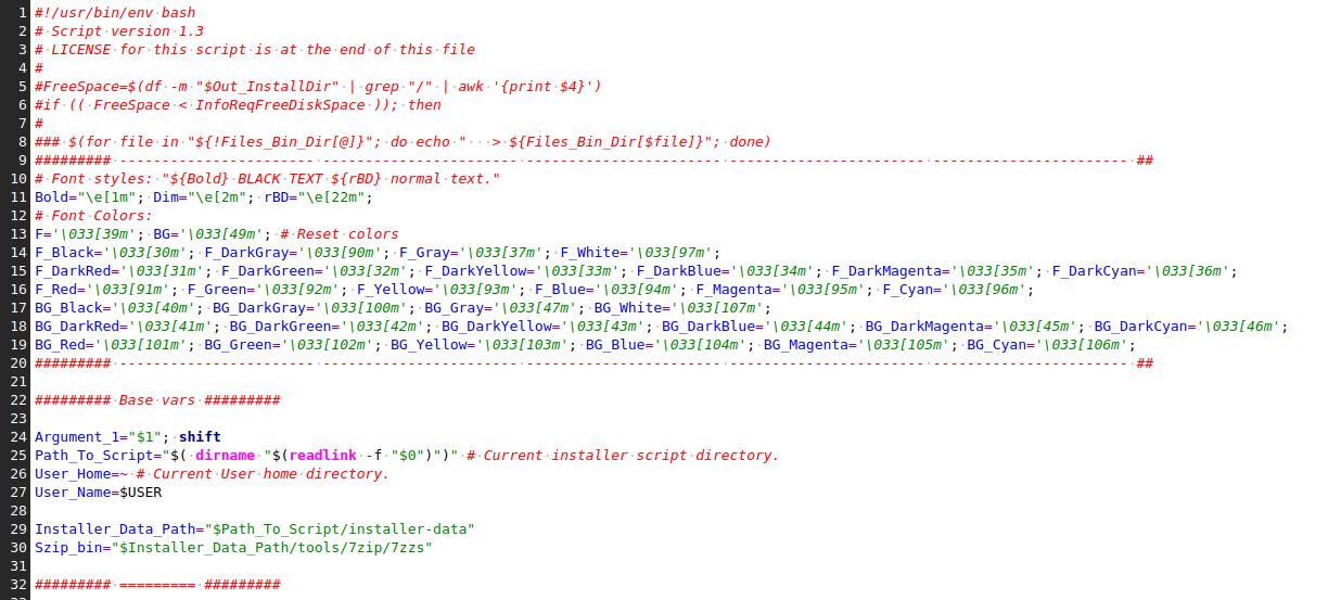 Остались параметры указывающие конечные пути установки, временная папка и путь к шаблону "uninstall" в конечном каталоге установки, так же немного переработаны имена переменных для удобства, всё равно переделывать практически весь скрипт, так почему бы не сделать лучше предыдущего?