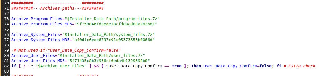 В этот раз я не буду полагаться на кривой линуксоидный функционал монтирования архивов, что во время тестирования с простыми архивами прекрасно работал, а как только повысил "сложность работы" - началось характерное линуксоидное мракобесие... Потому раздел параметров установки значительно сократился.