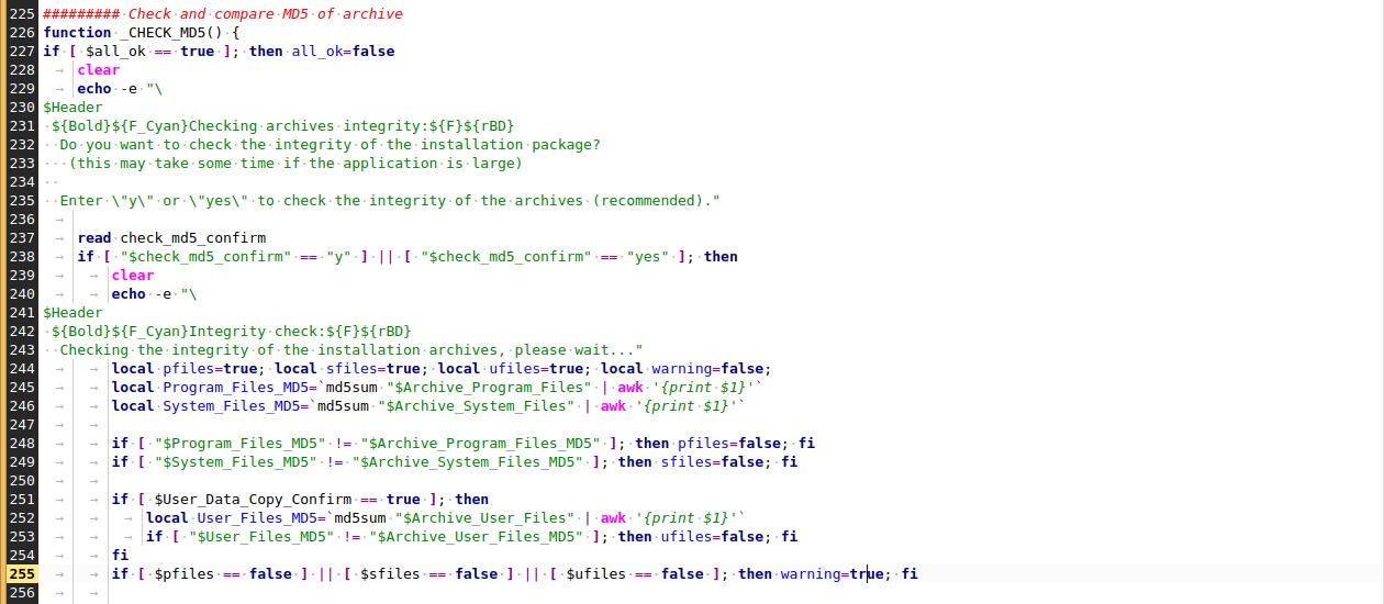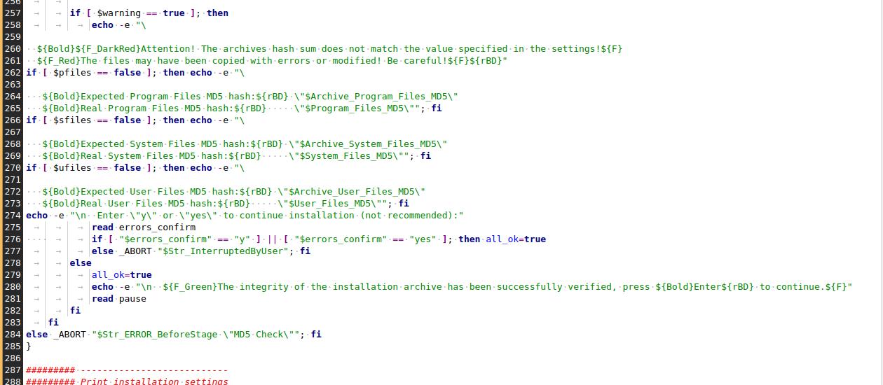 Далее нужно переработать функцию _CHECK_MD5, в её задачи входит проверка целостности архивов и информирование пользователя о возможных проблемах.