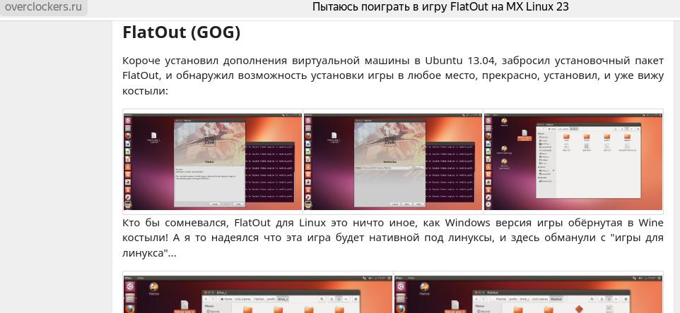 Пытаюсь поиграть в игру FlatOut на MX Linux 23