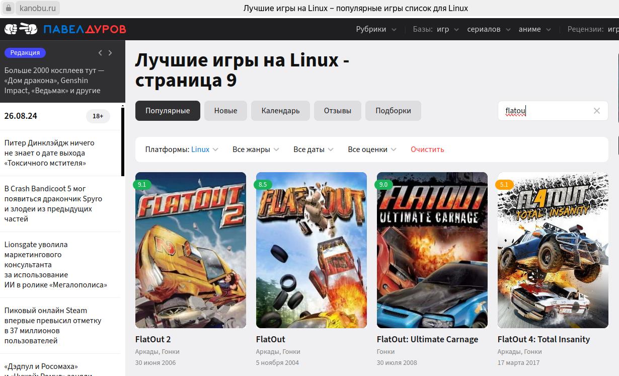Причём что забавно, это вранье про "игры для Linux" распространено на многих веб ресурсах: