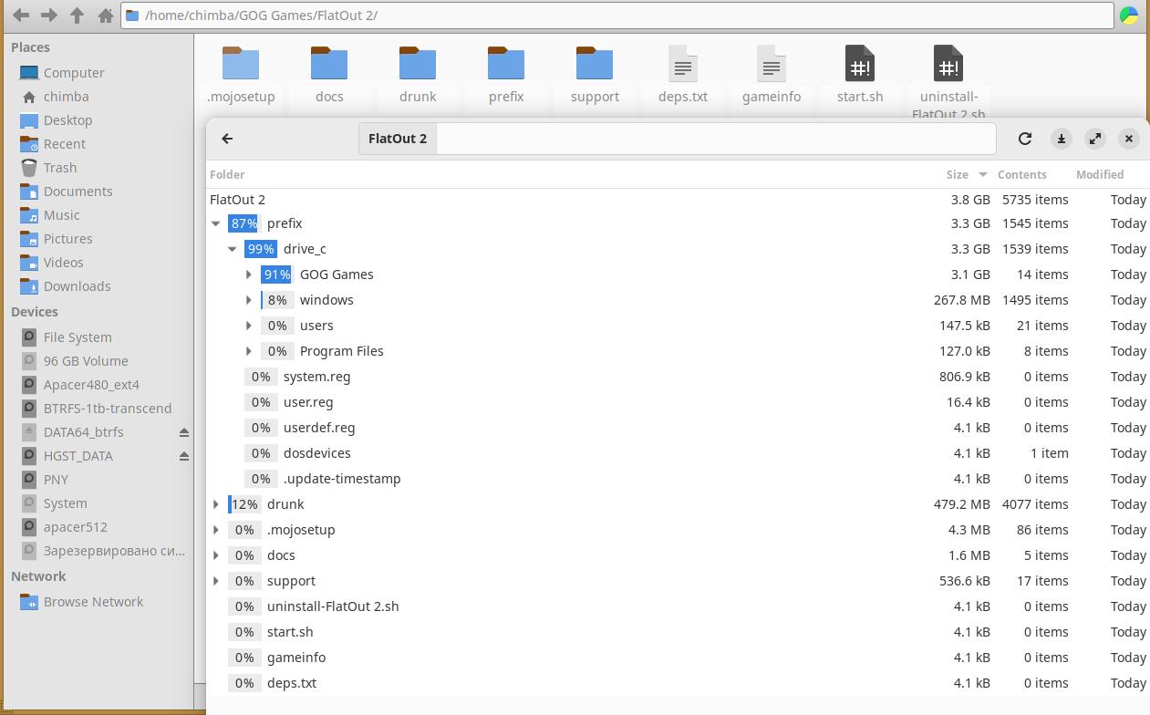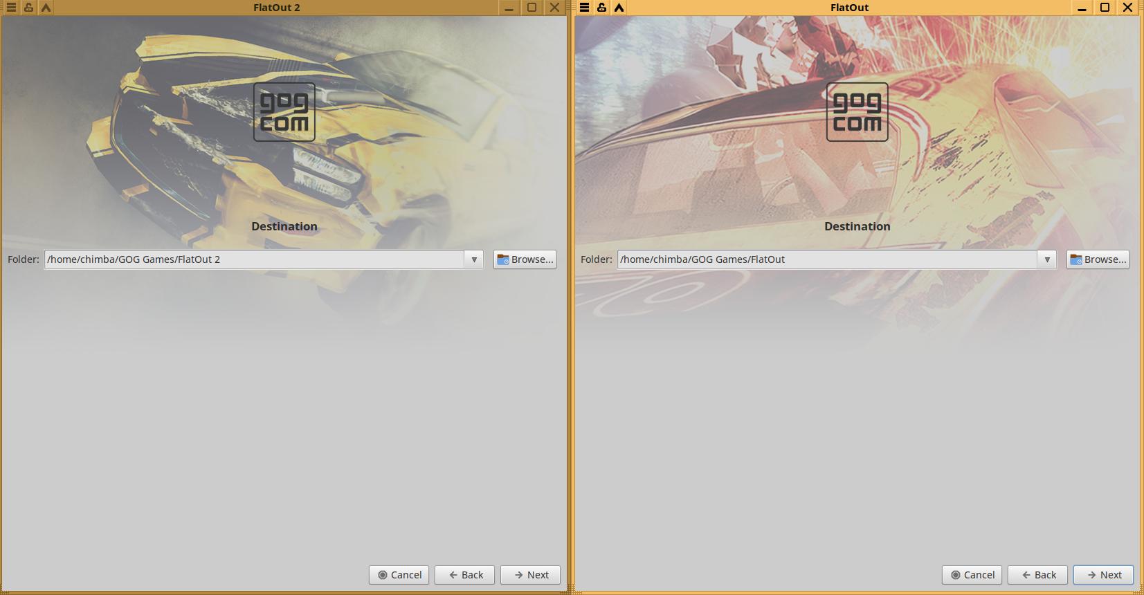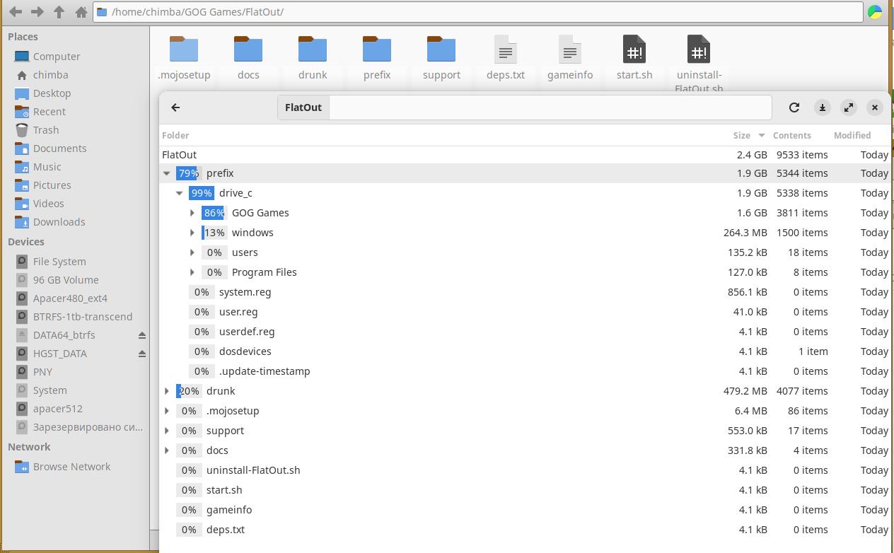 Давайте установим обе части FlatOut, и проверим ещё раз, а то вдруг ранее я что-то неправильно увидел, и на самом деле там были не Windows игры обвёрнутые в Wine: