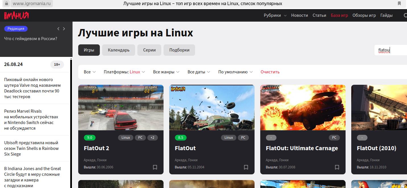 Так что если линуксоиды в грудь бьют крича, мол, под линукс много игр есть, и даже ссылаются на системные требования в интернете, увы, но это зачастую будет откровенной ложью, ибо технически тот же FlatOut никогда не выпускался на Linux, а его мнимая поддержка реализована через Wine, что кстати не упомянуто на сайте в системных требованиях, что первыми попадают на глаза: