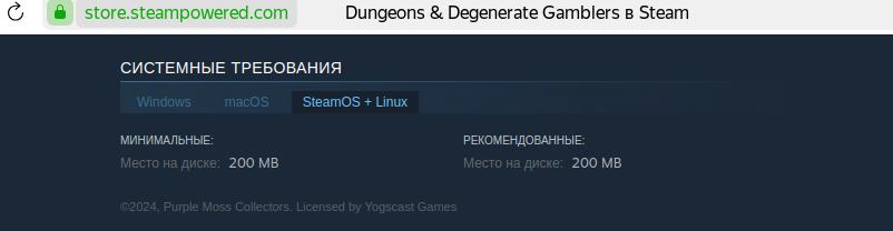 То есть в Steam даже не идёт речи о том, что игра подойдёт для большинства линуксов, они указывают именно значком SteamOS, что подразумевает нативную работу на их дистрибутиве Linux для Steam Deck, ибо системные требования начинаются именно со SteamOS, и только потом говорят про Linux, ну а в самих требованиях ничего не указано толком: