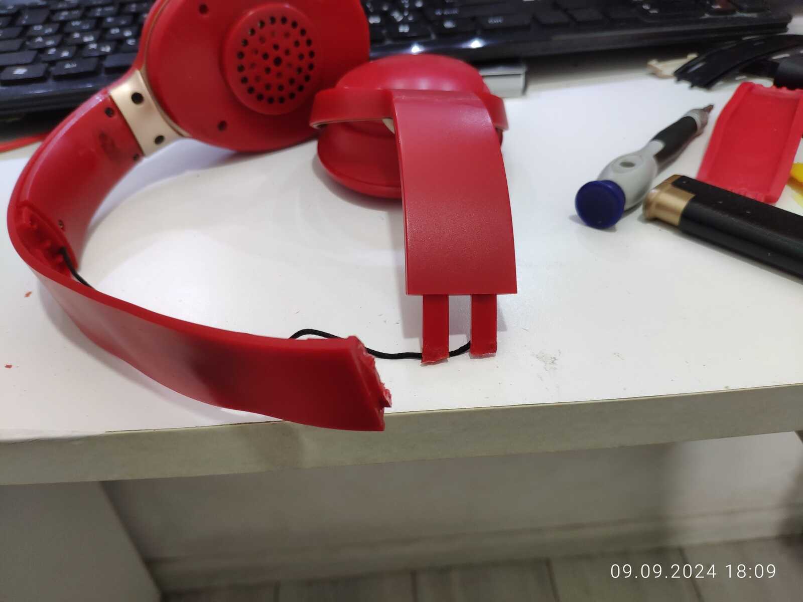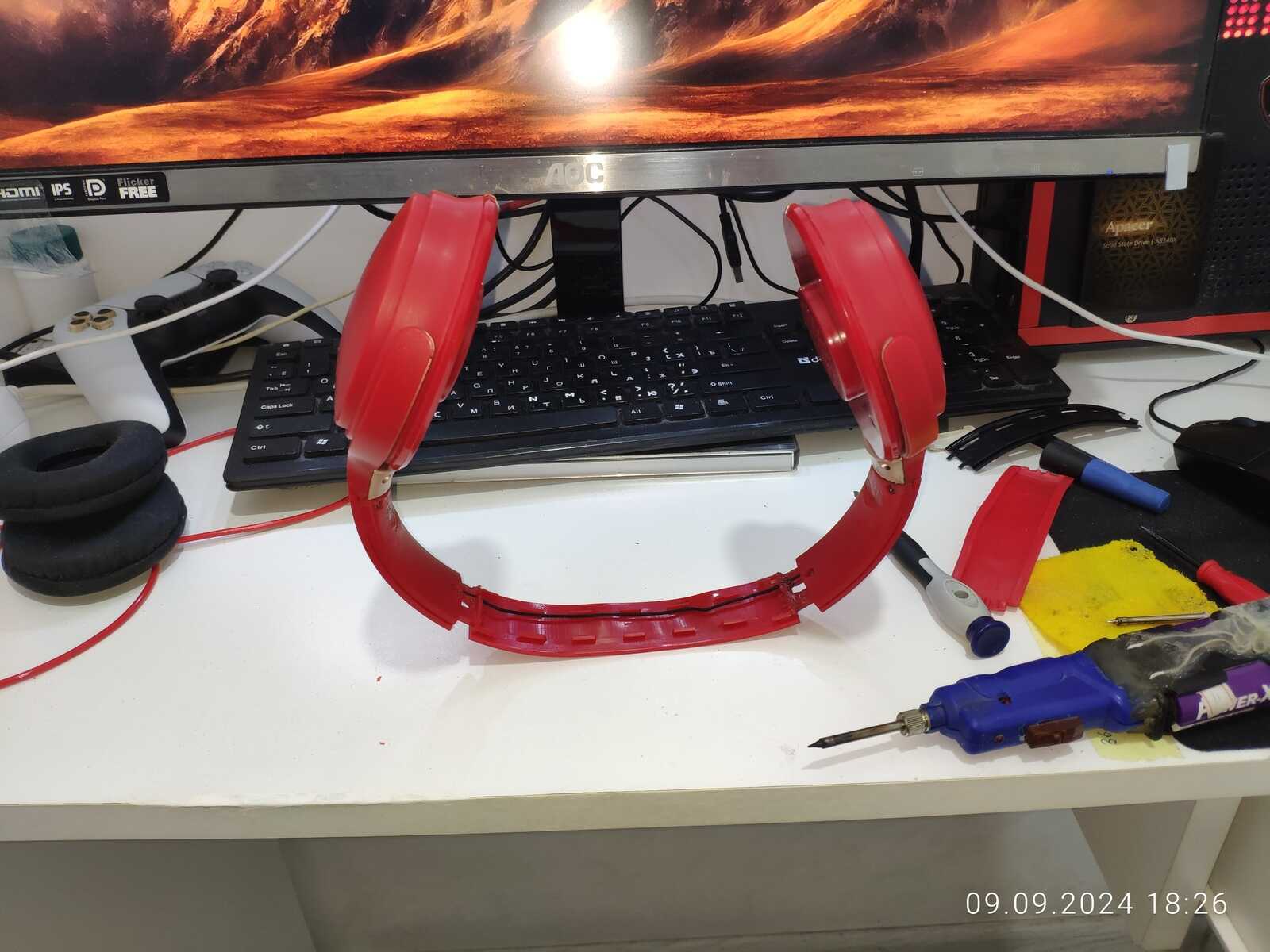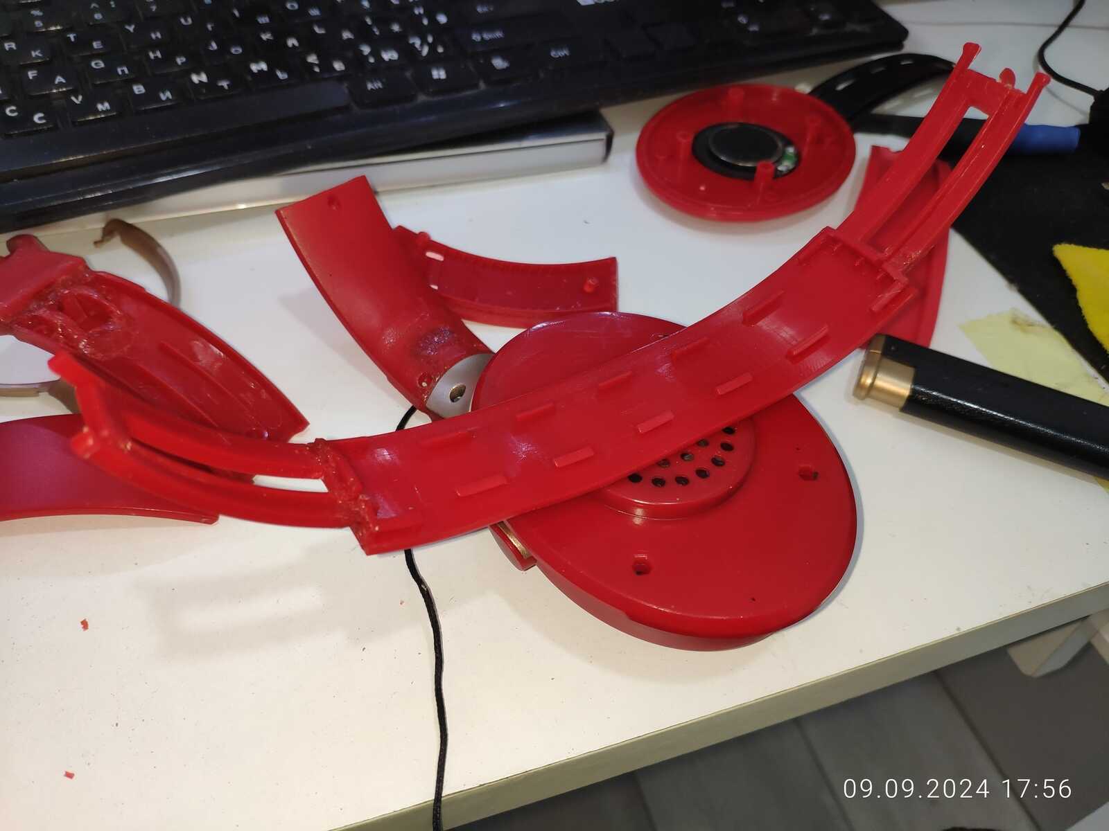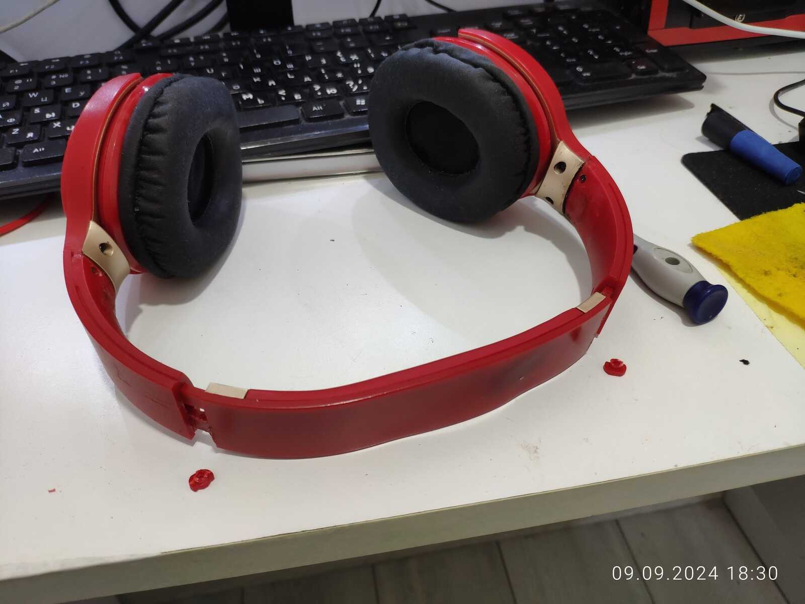 Собираю наушники, трещины и отломанные дуги припаиваю обратно, всё же мне нужна регулировка высоты: