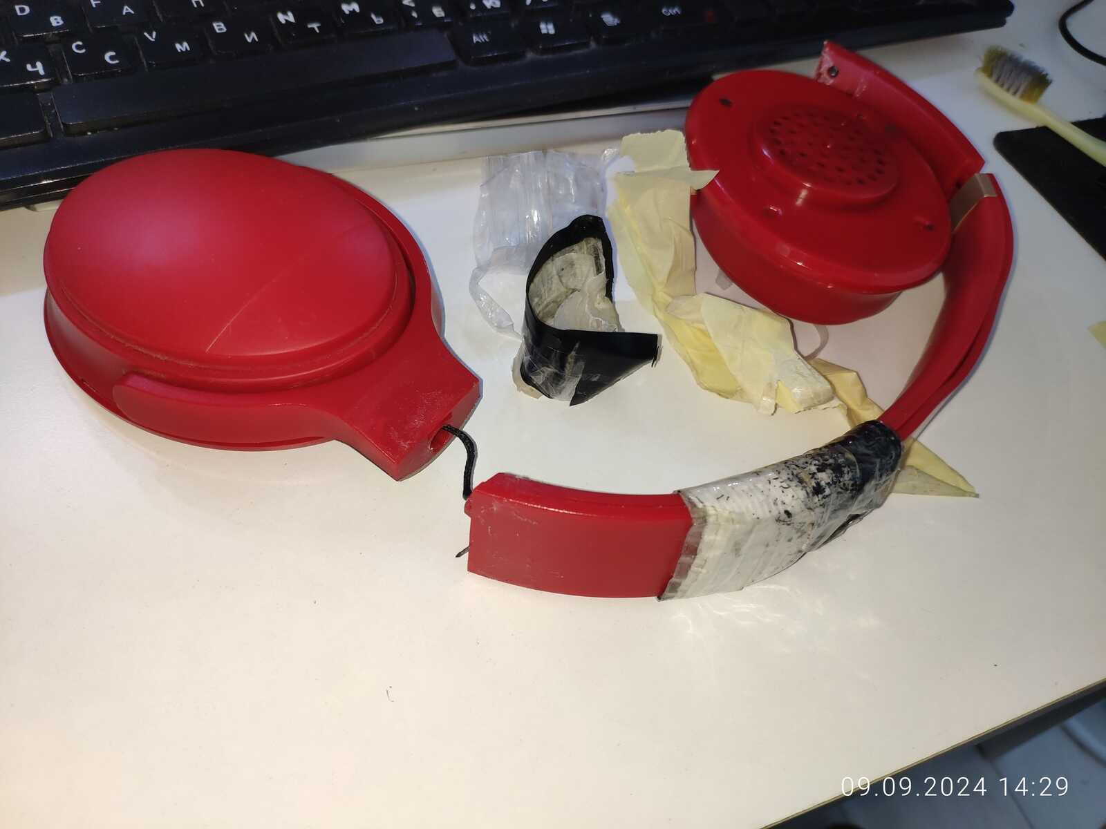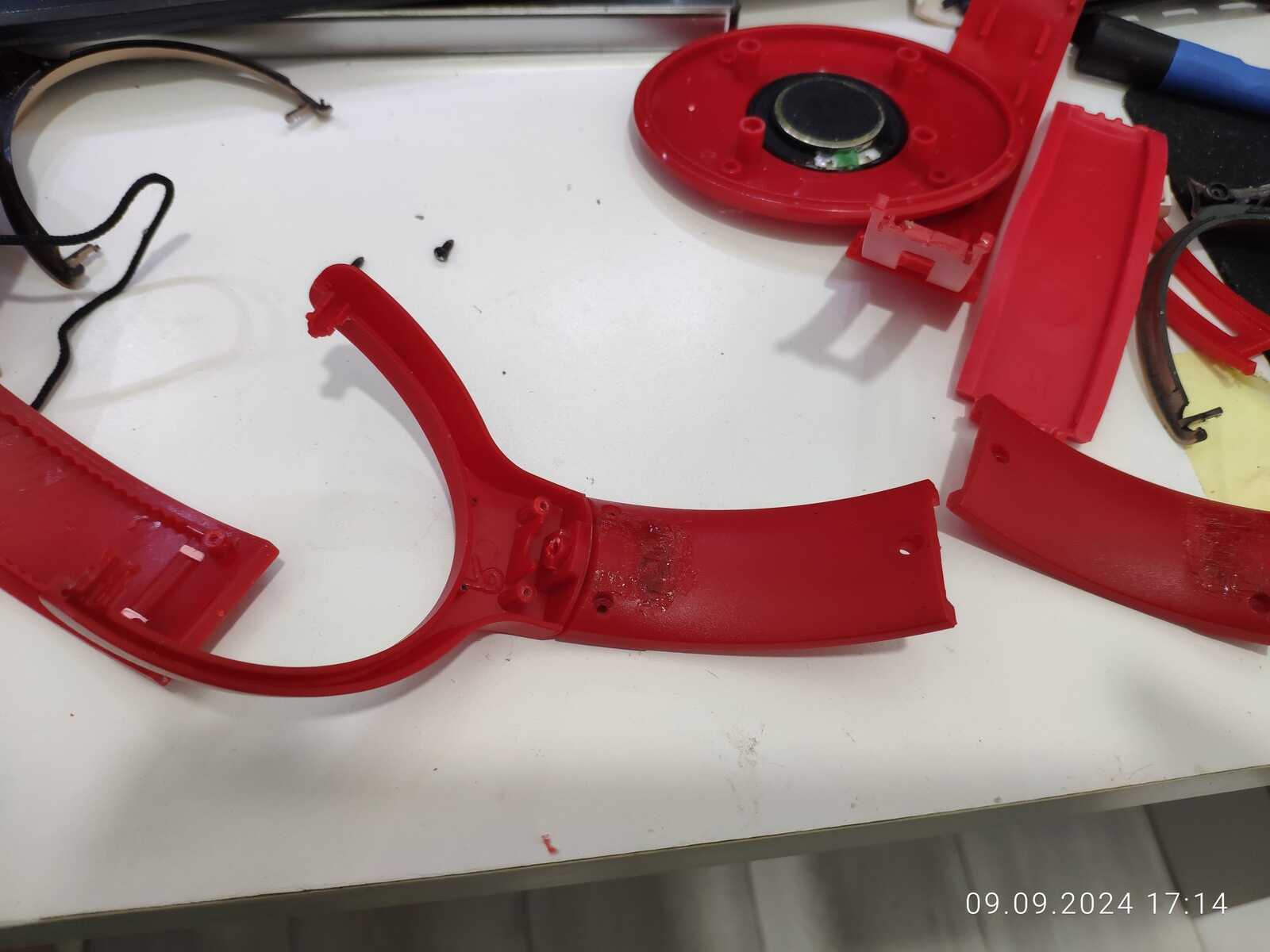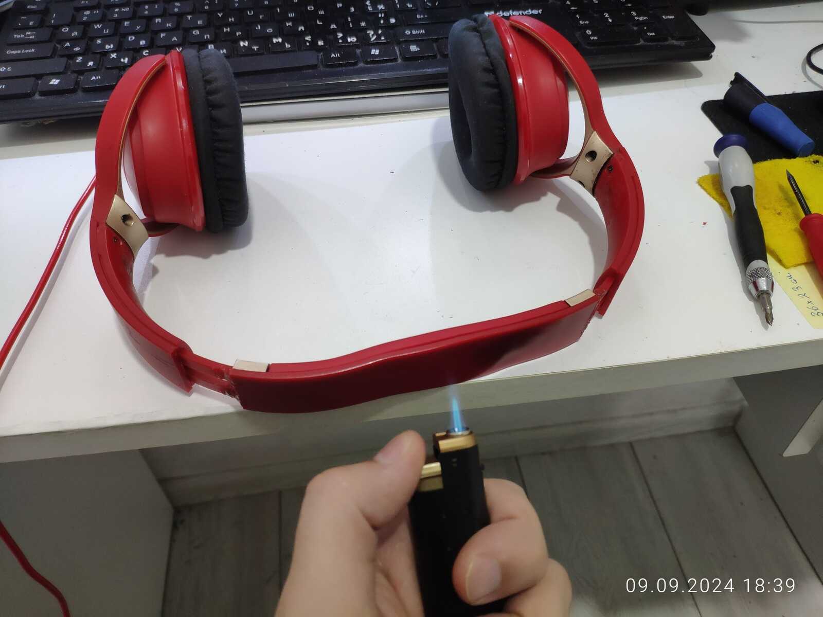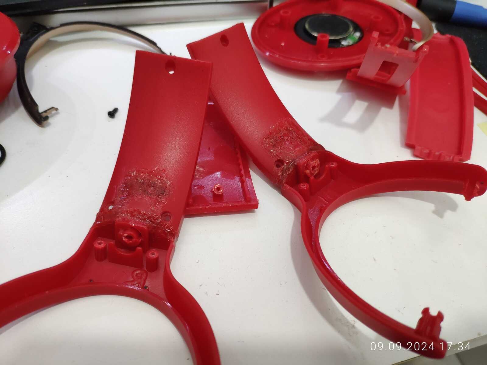 Собираю наушники, трещины и отломанные дуги припаиваю обратно, всё же мне нужна регулировка высоты: