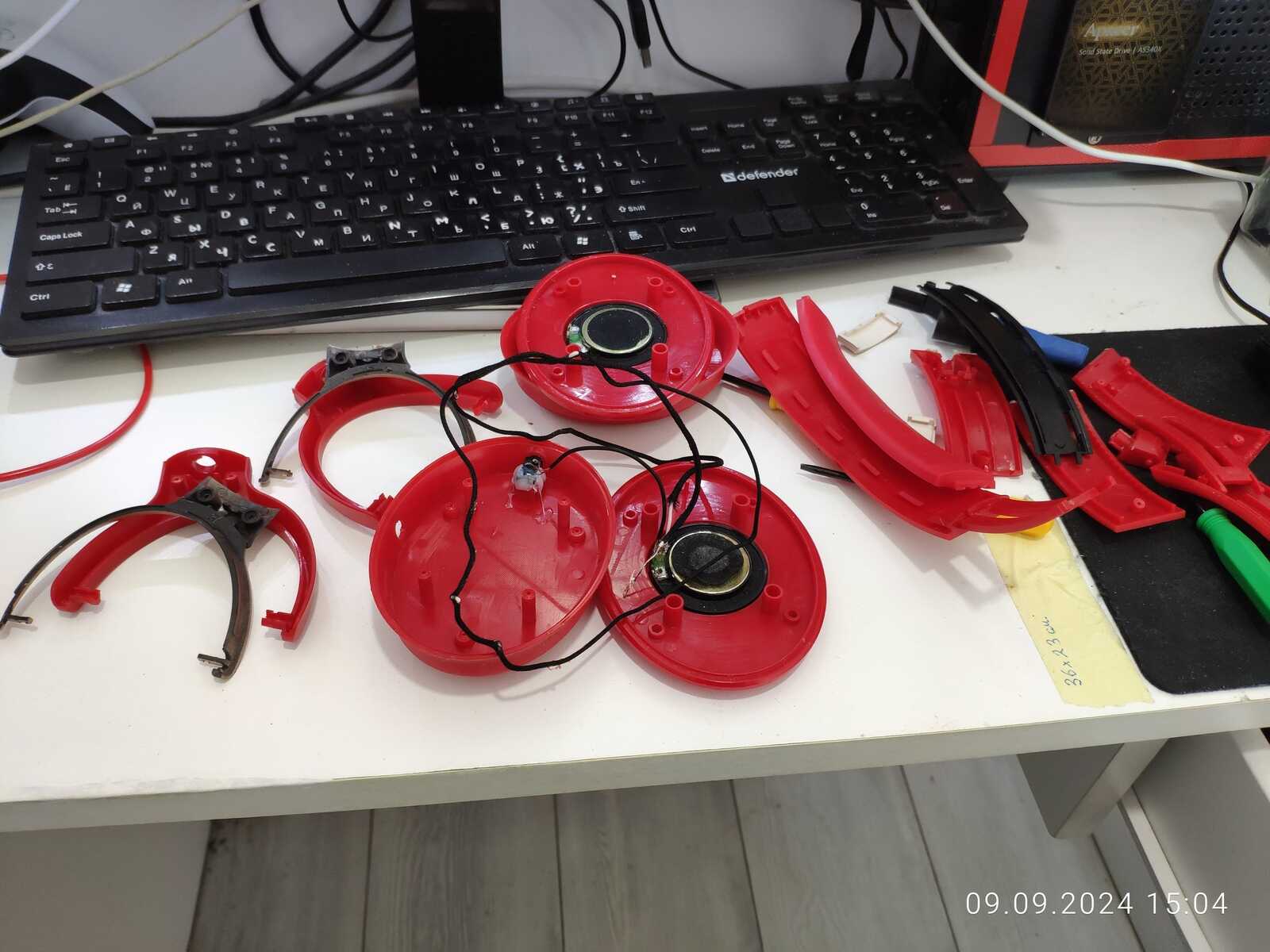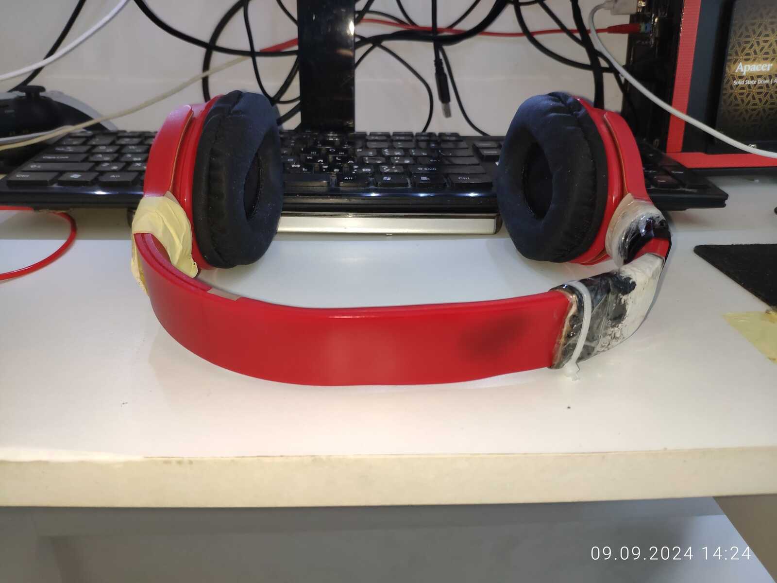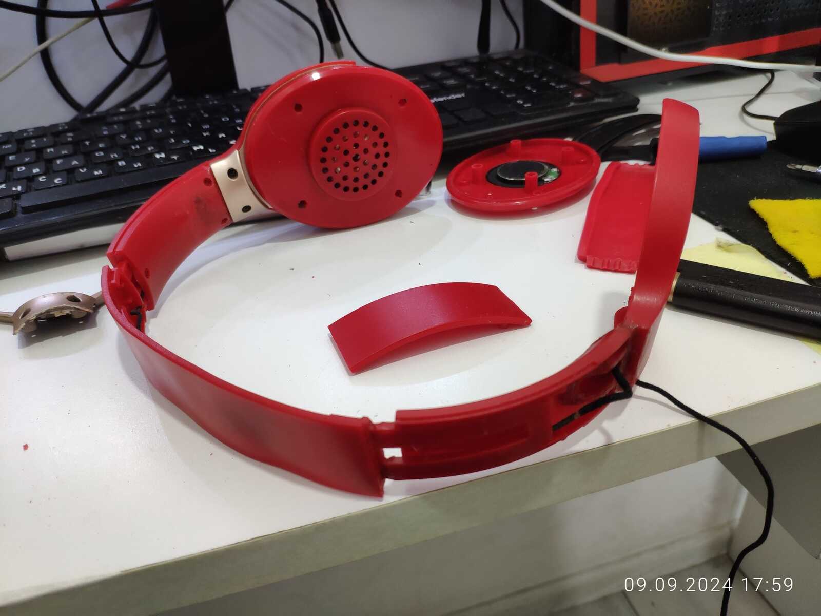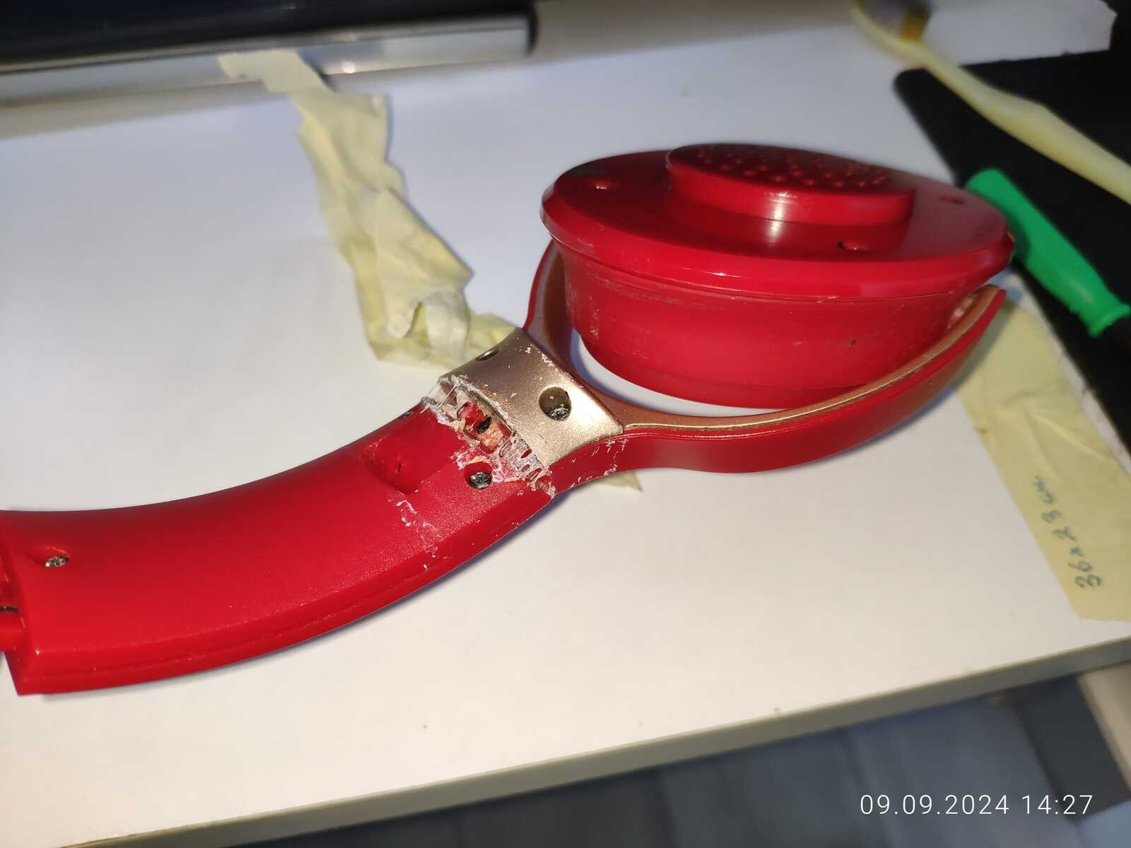 Собираю наушники, трещины и отломанные дуги припаиваю обратно, всё же мне нужна регулировка высоты: