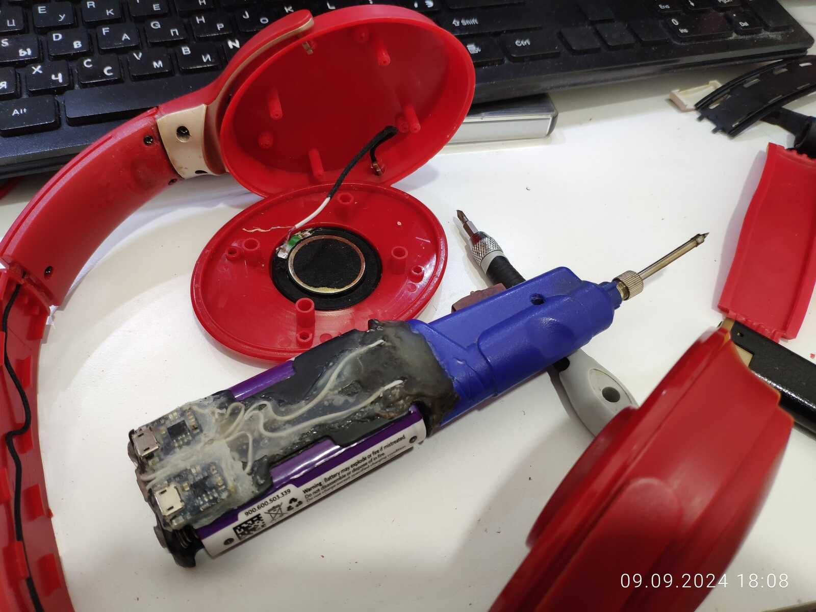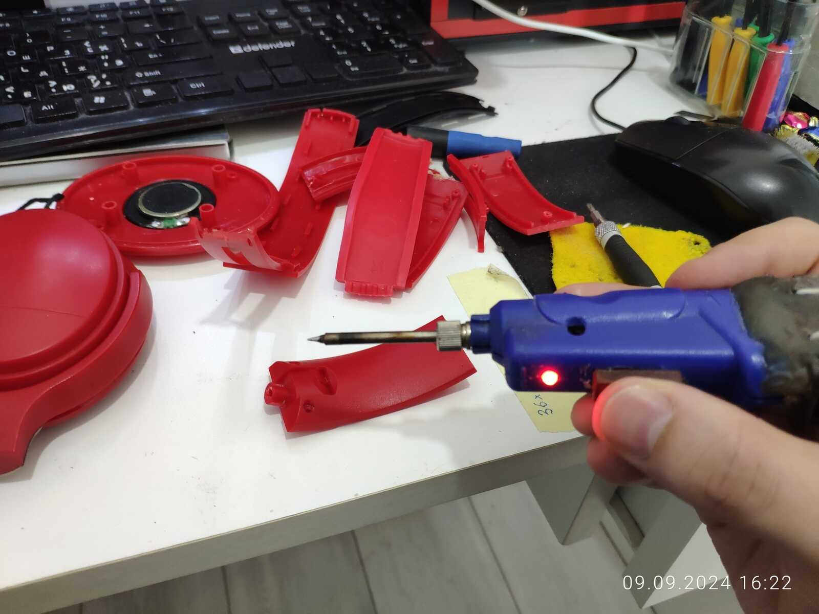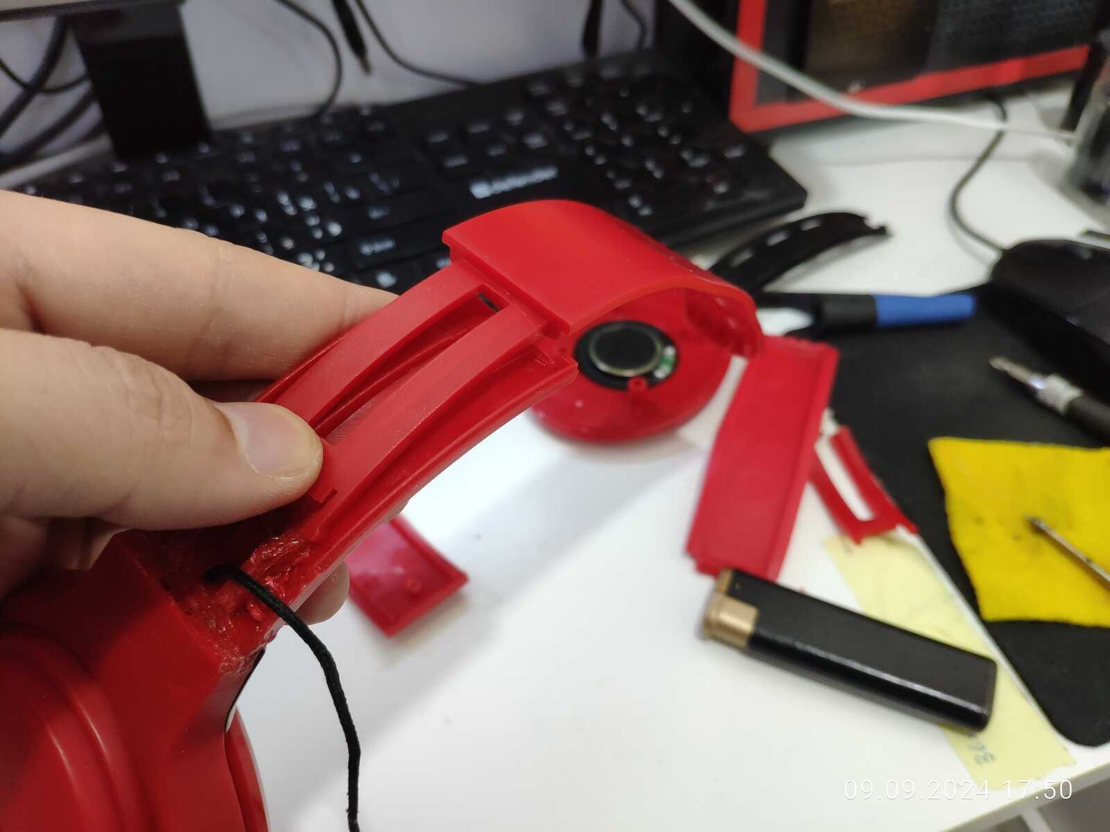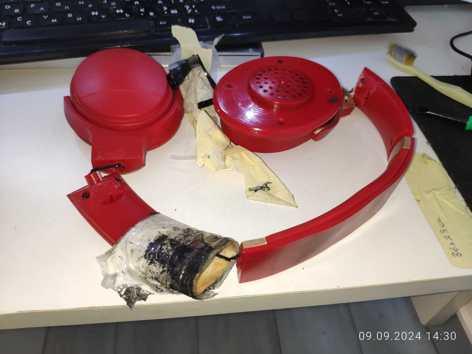 Собираю наушники, трещины и отломанные дуги припаиваю обратно, всё же мне нужна регулировка высоты: