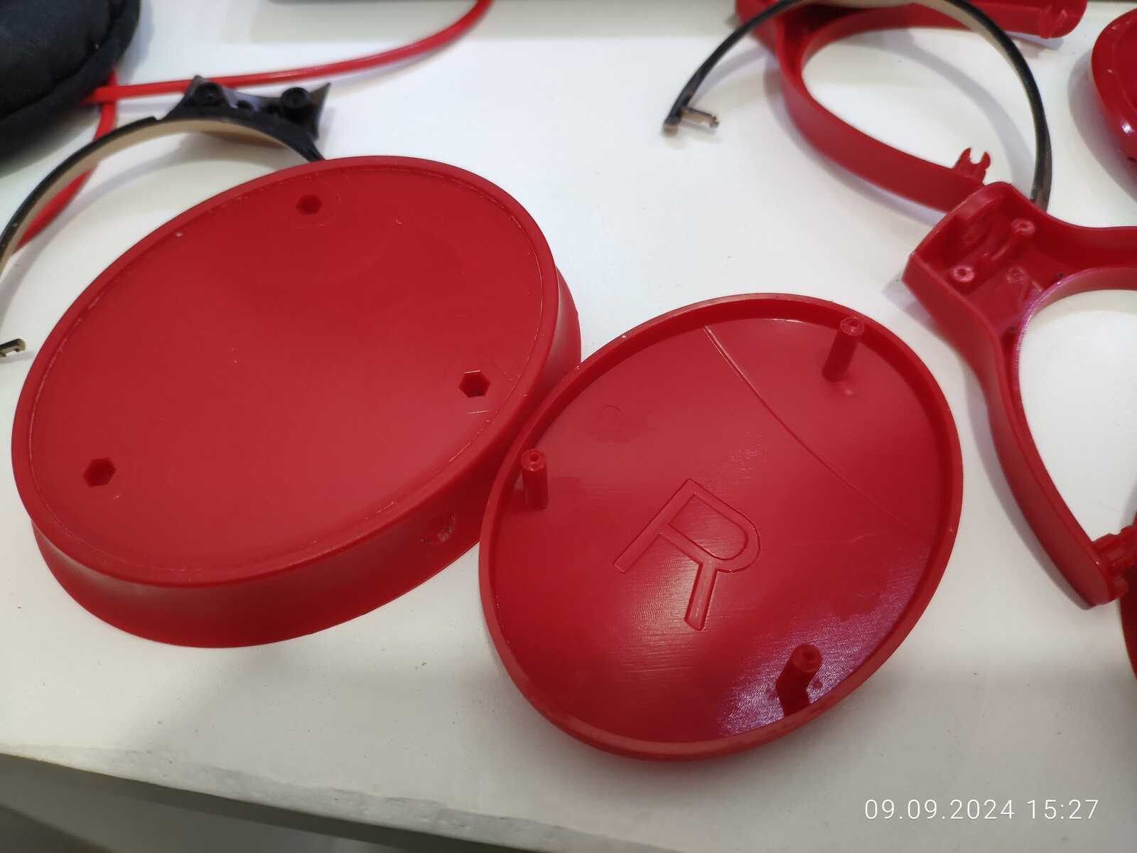 Да, это две разные детали одного корпуса, забавная конечно конструкция, но с одного наушника покрытие наконец снято: