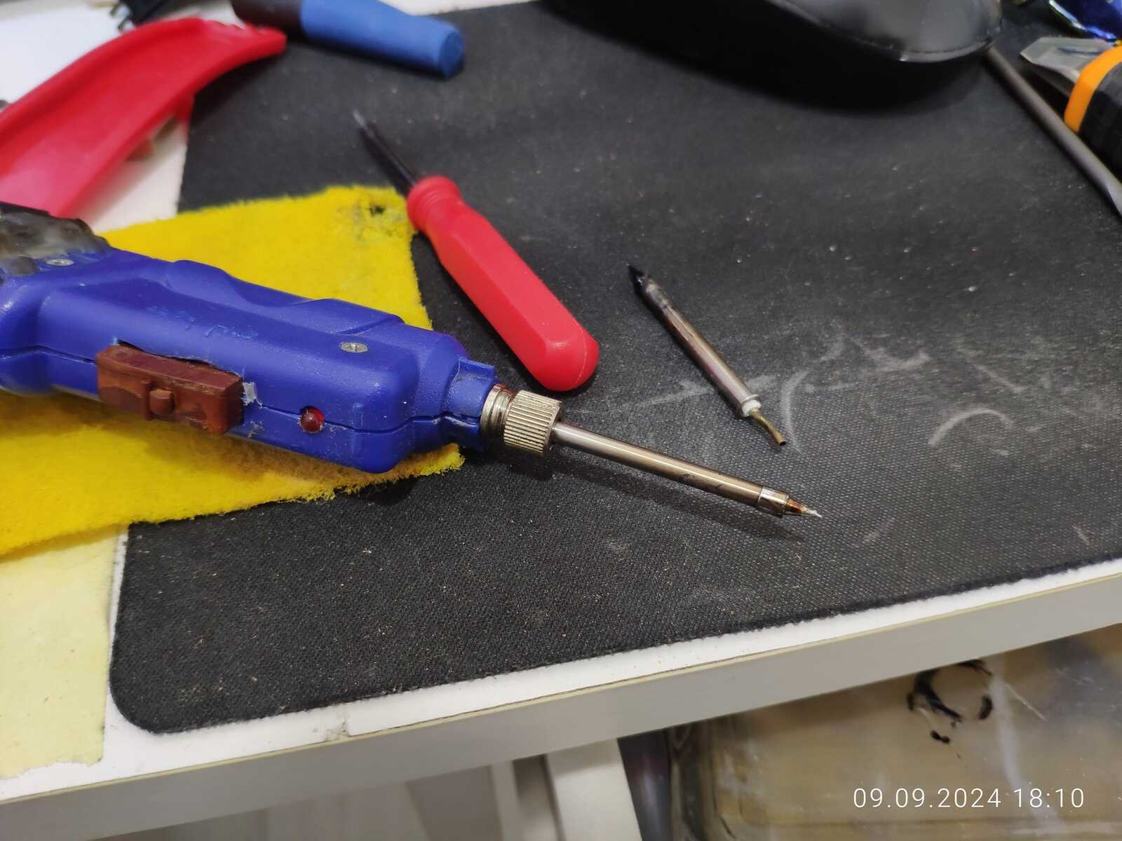 Давайте сменим жало аккумуляторного самодельного паяльника, и поработаем над пластиком: