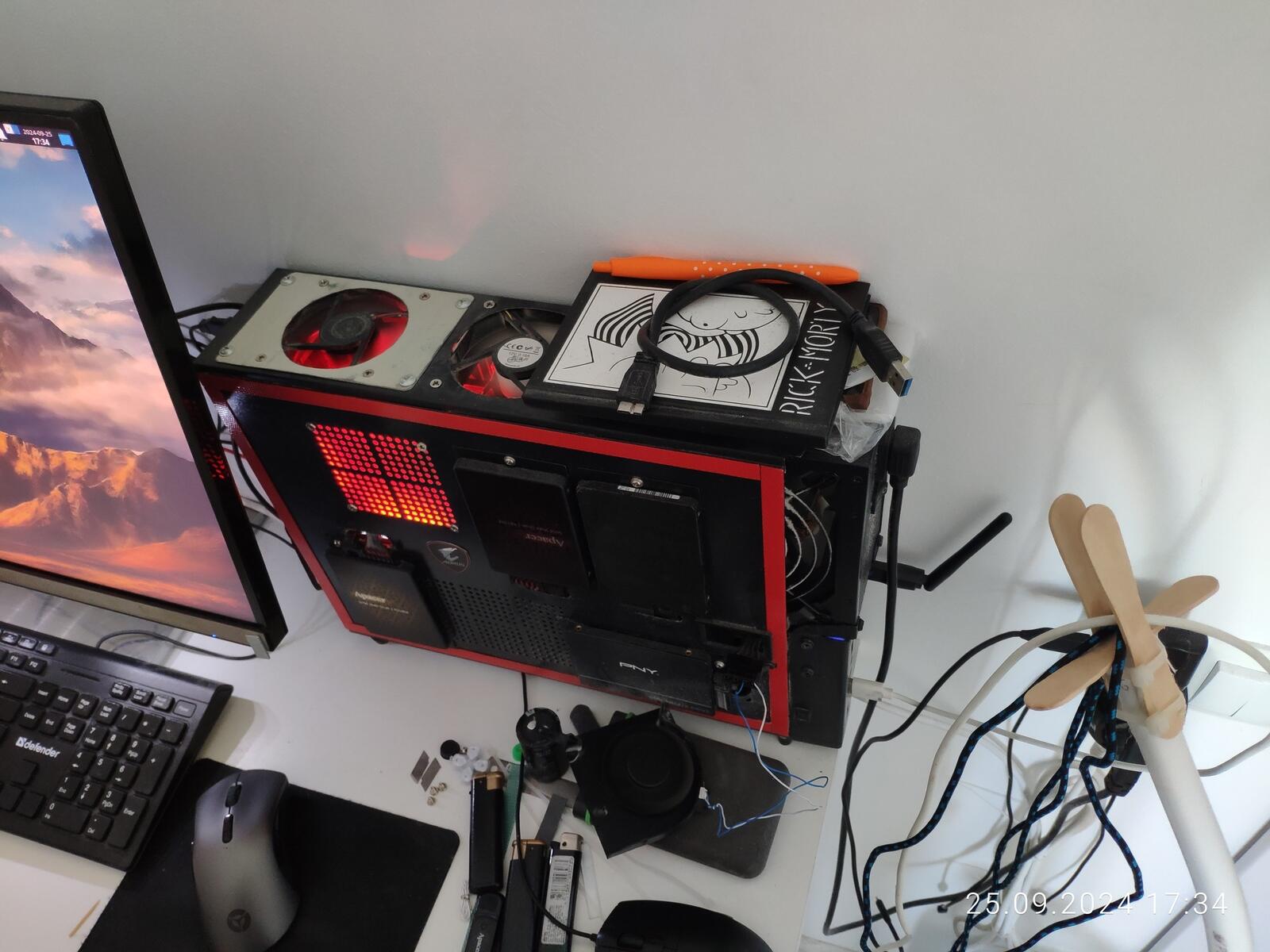 В качестве тестовой системы будет использоваться мой компактный ПК в самодельном корпусе размером примерно 10x30x40 сантиметров, состоит он из AMD Ryzen 7 2700X, 64 ГБ DDR4 ОЗУ, MSI GeForce GTX 1070 AERO OC, 4x SATA SDD/HDD, 1x NVMe SSD и блок питания 2E Gaming 2E-EP750GM-140 на 750 Вт с сертификатом 80 PLUS GOLD, без нагрузки этот БП работает в пассивном режиме: