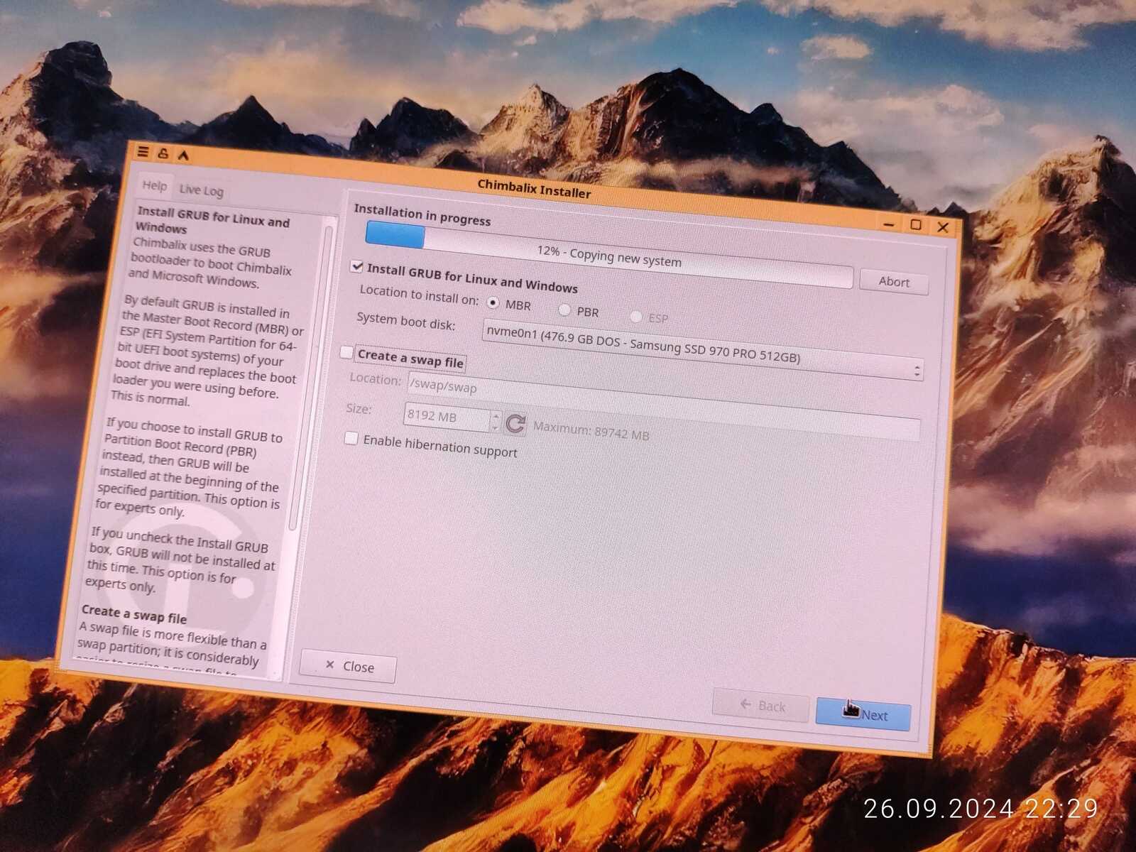 Ладно, давайте перейдём к характеристикам тестового ПК, а так же к установке Chimbalix 24.4.