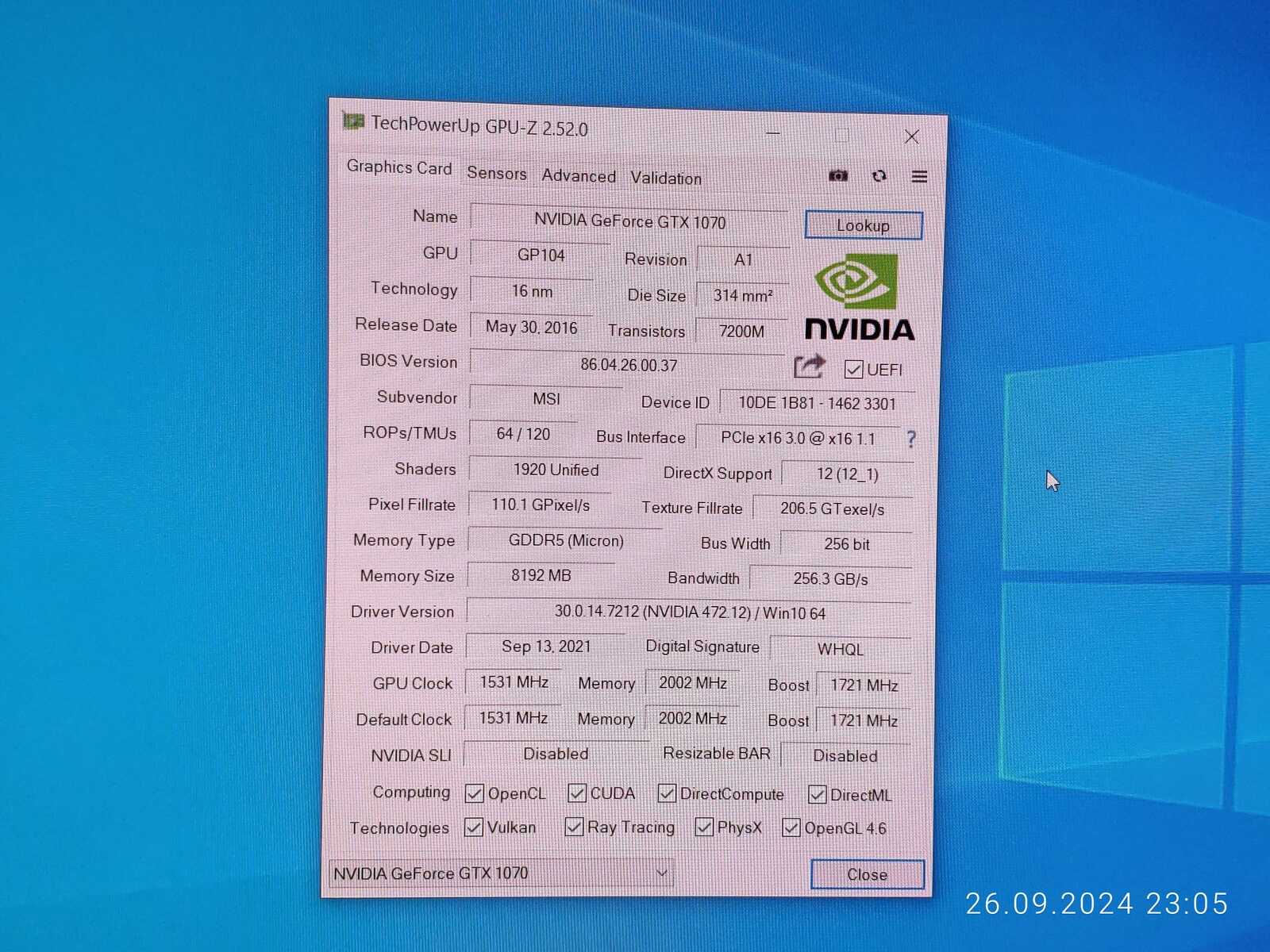 Далее Windows 7/10, тут уже установлен старый драйвер версии 472.12, чтобы в пределах Windows драйвер не отличался, хотя конечно же на Windows 10 можно было и 560 драйвер установить, но давайте дадим фору линуксам, они и так обычно печальны в играх...