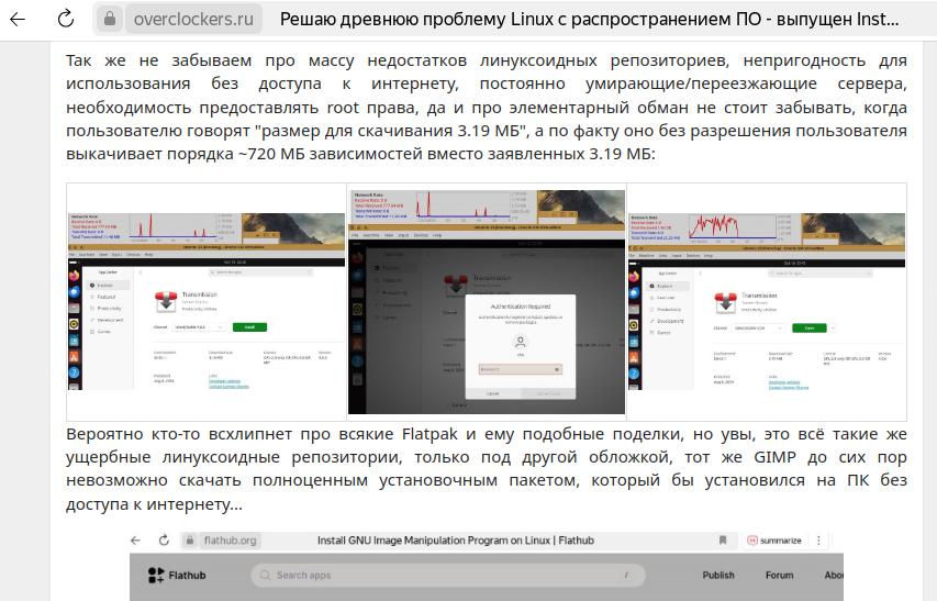 5) Обман, root права и снова доверие: В линуксах центры приложений (оболочки для репозиториев) часто обманывают пользователя с размером загружаемых данных, как правило, они не учитывают объём зависимостей для скачивания, или делают это неправильно, в итоге для установки приложения размером 3 мегабайта может потребоваться почти гигабайт зависимостей, ну а требование root прав для установки программы из репозитория, даже не знаю, это по сути дать полный доступ к системе непонятно чему и для чего, ведь с объёмом загрузки уже обманули...