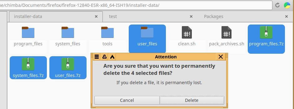 Теперь нужно создать установочный пакет 32 битной версии браузера, тут всё максимально просто, копирую уже готовый пакет, удаляю файлы 64 битной версии программы, заменяю 32 битным Firefox, разумеется не забываю перепаковать архивы: