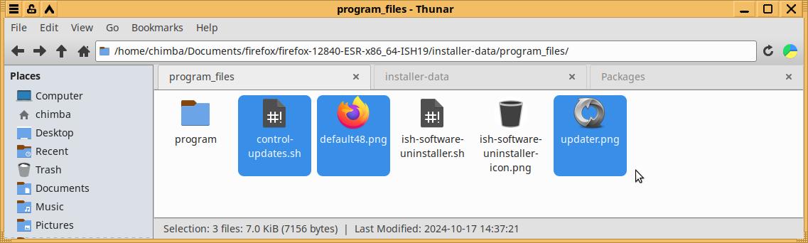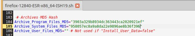 Так как у меня уже есть готовые файлы от другой версии браузера Firefox в формате Installer-SH - просто копирую всё необходимое в каталог program-files, это пара иконок и скрипт, позволяющий управлять автоматическими обновлениями, да, Firefox не позволяет полностью отключить обновления через обычные настройки, потому был разработан костыль: