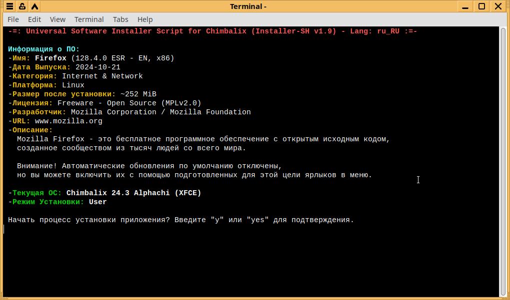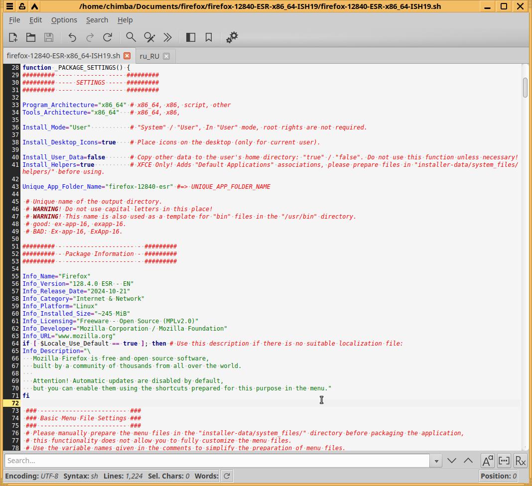 Давайте приступим к упаковке программы Mozilla Firefox 128.4.0 ESR в формат Installer-SH: