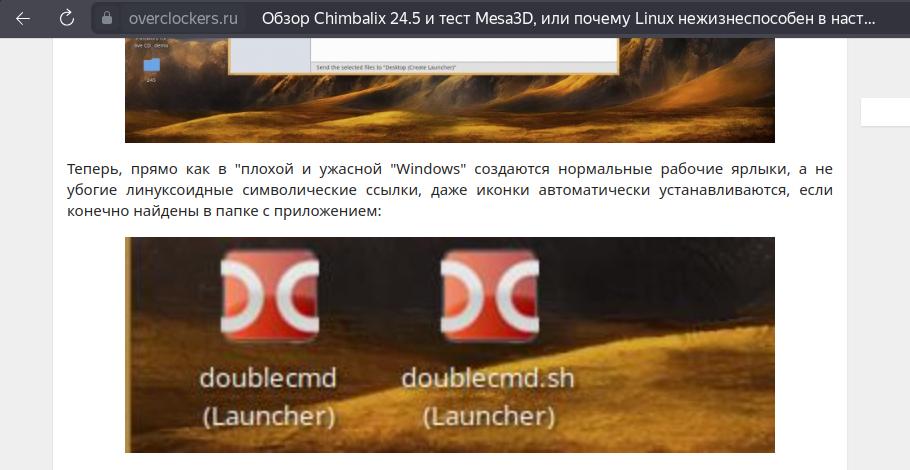 Хотя стоит заметить, в дистрибутиве Linux под названием Chimbalix эта проблема была исправлена специальным скриптом, позволяющим в один клик через контекстное меню создать полноценные ярлыки: